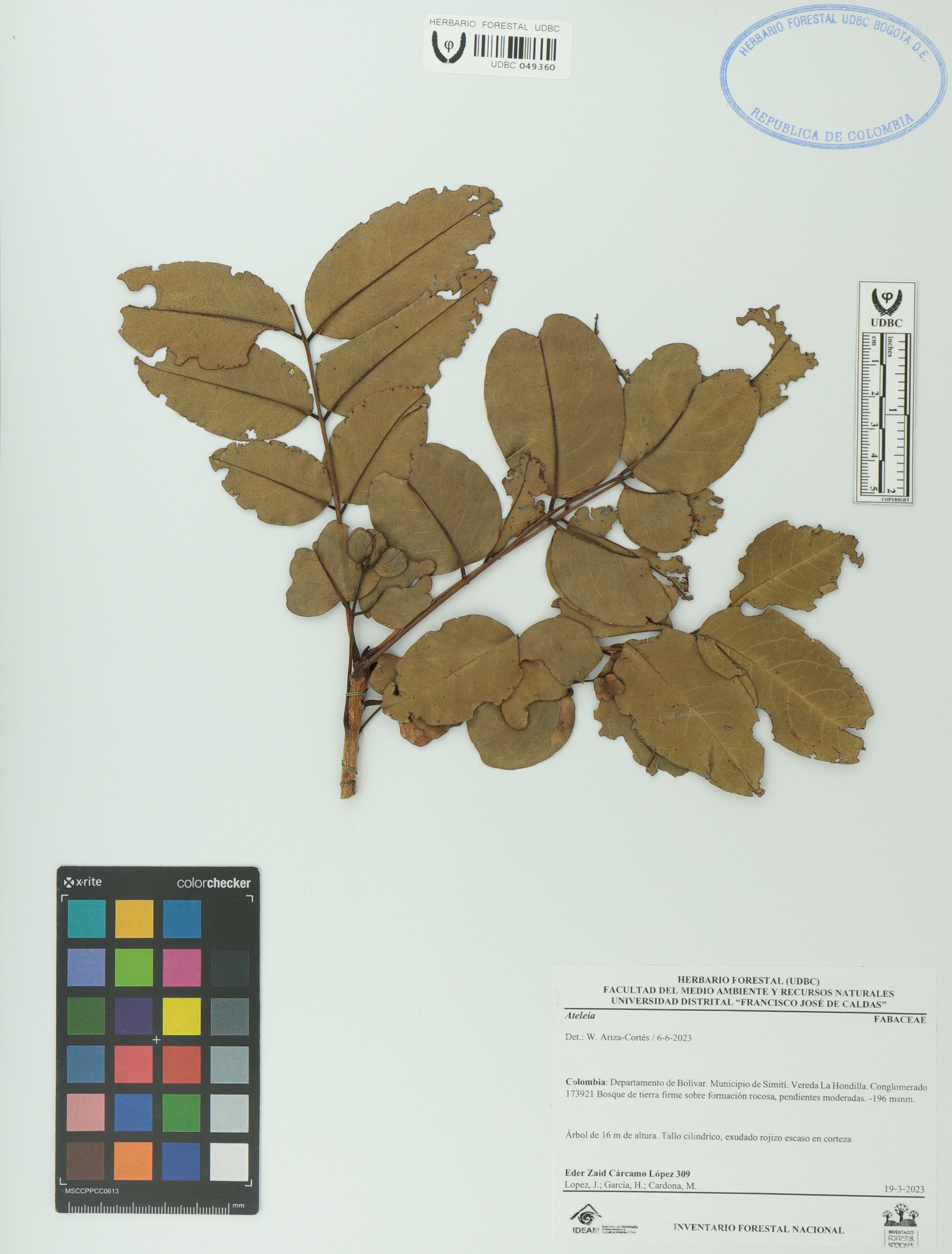 Fotografía del ejemplar Cárcamo-L., E. 309, determinado como Ateleia sp. en el año 2023