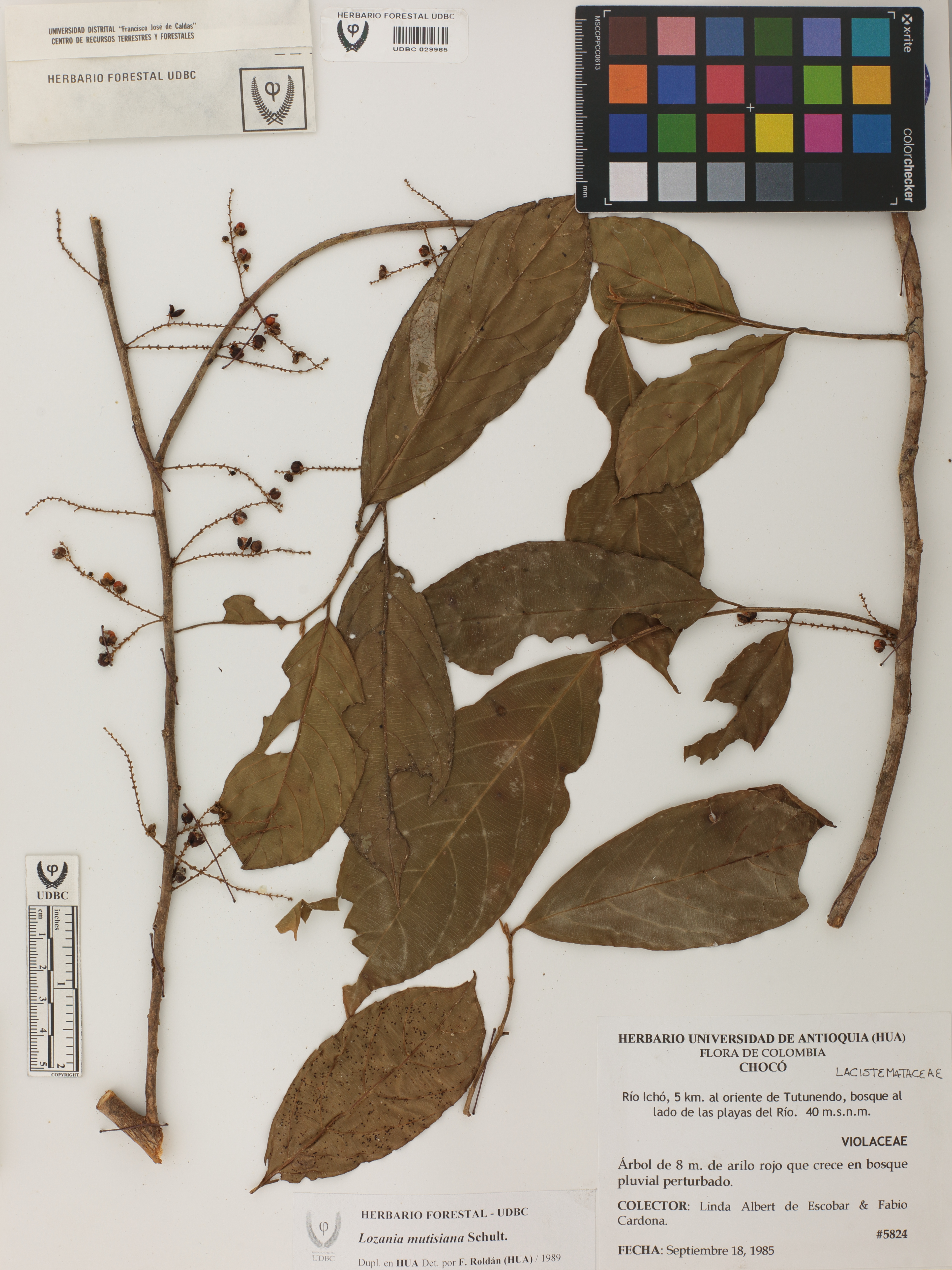 Fotografía del ejemplar Albert de E., L. 5824, determinado como Lozania mutisiana en el año 1989