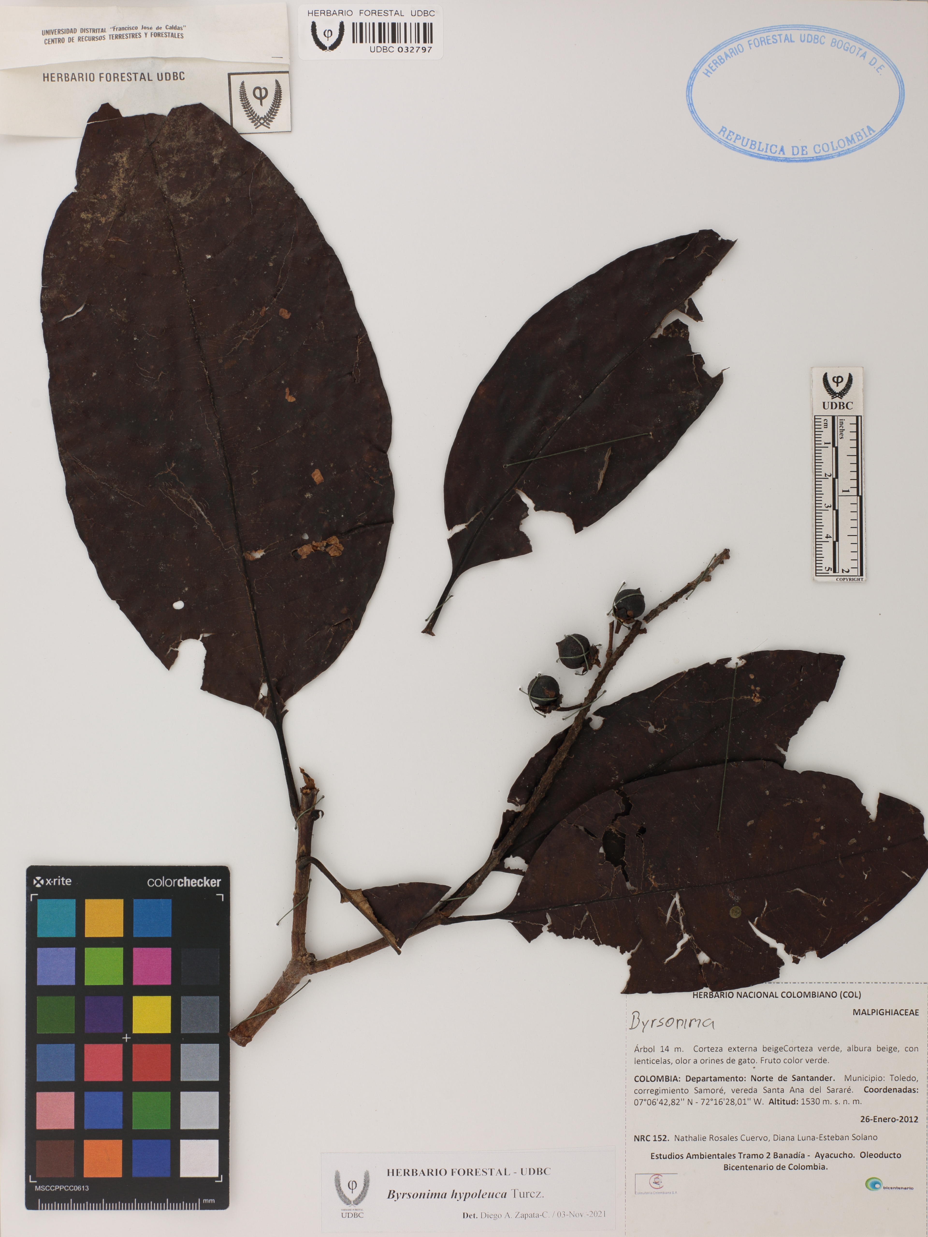 | dc.description | Fotografía del ejemplar Cuervo, E. 152, determinado como Byrsonima hypoleuca en el año 2021 | |