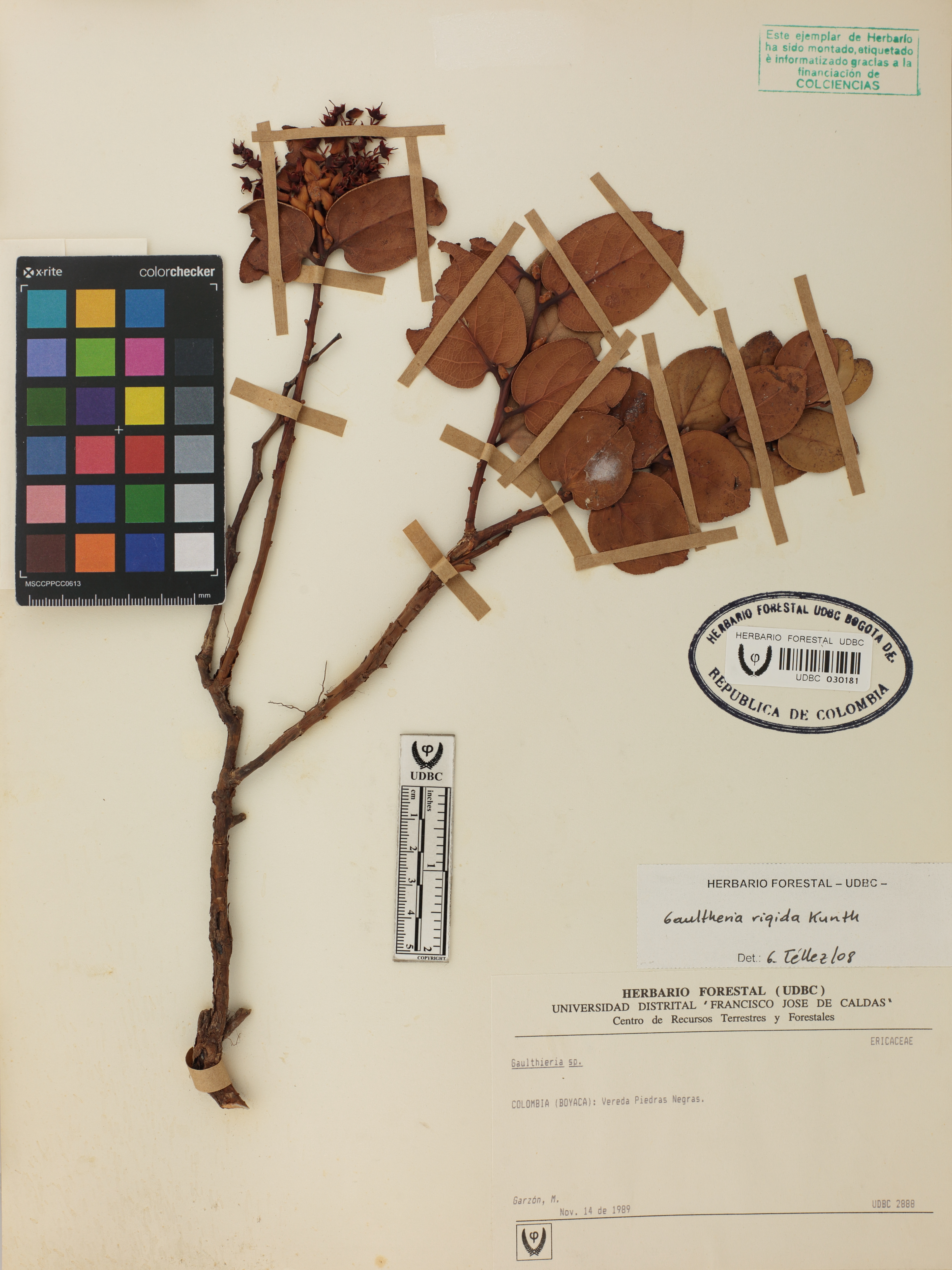 Fotografía del ejemplar Garzón, M., determinado como Gaultheria rigida en el año 2008