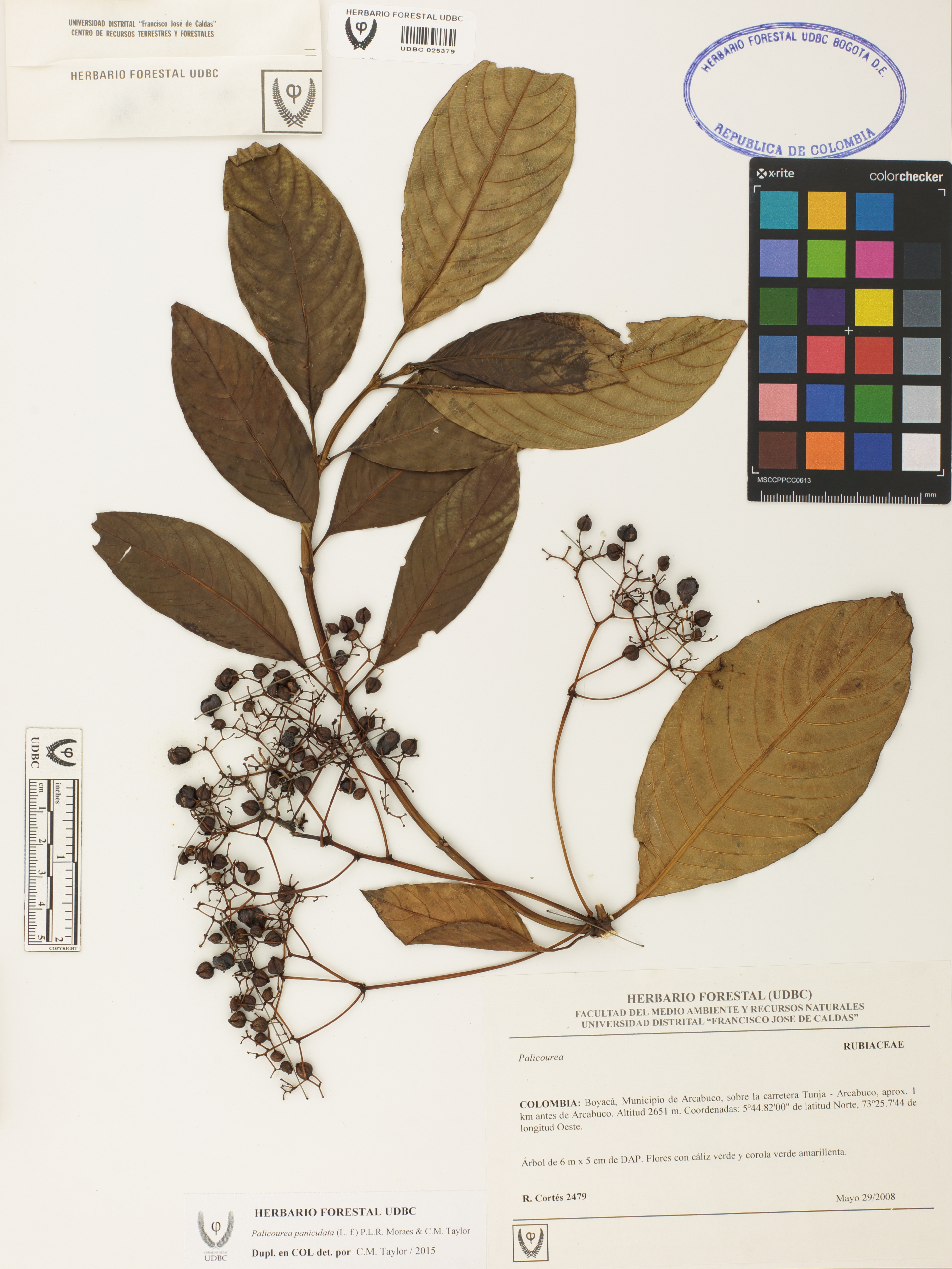 Fotografía del ejemplar Cortés-B., R. 2479, determinado como Palicourea paniculata en el año 2015