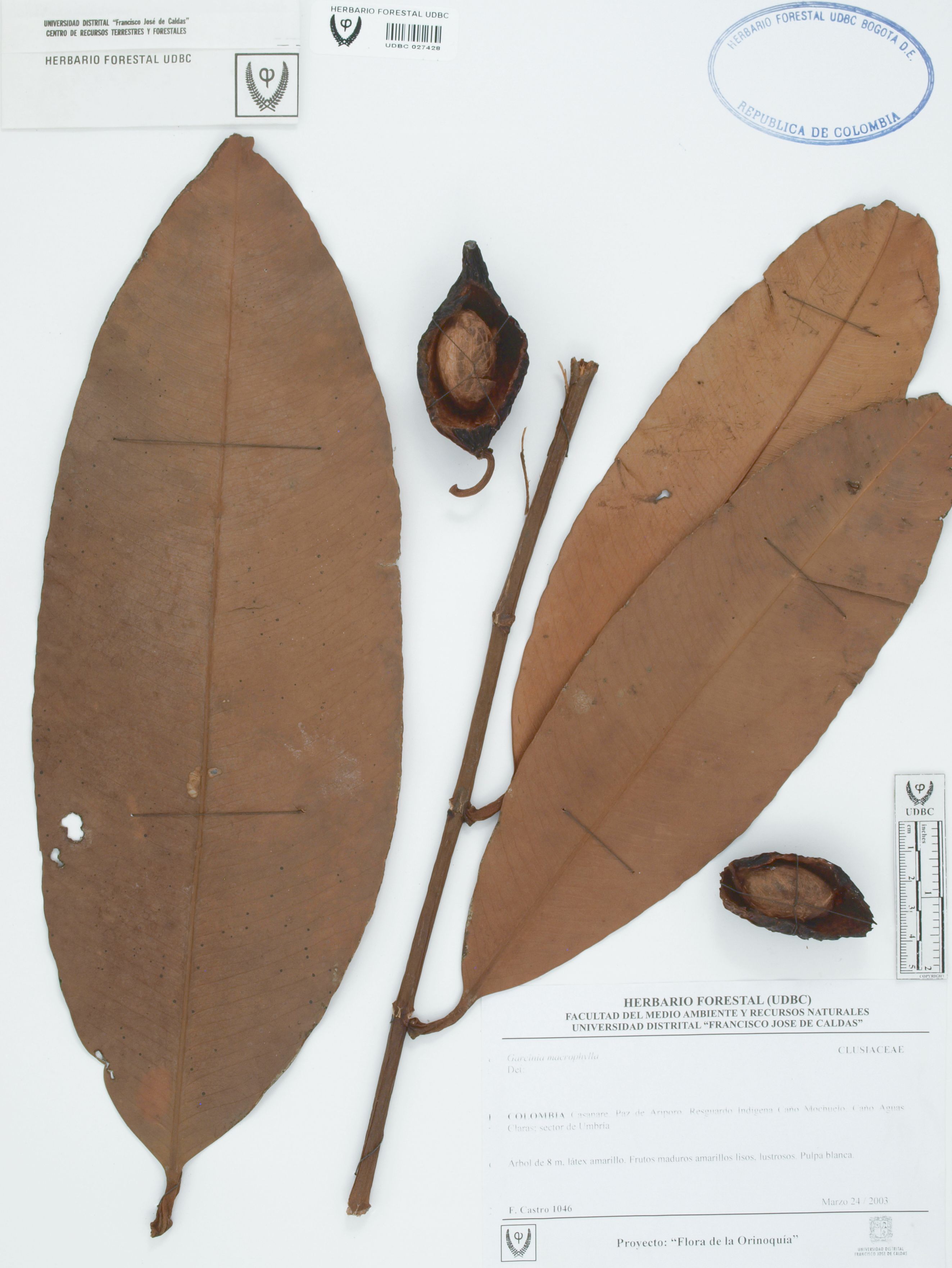 Fotografía del ejemplar Castro, F. 1046, determinado como Garcinia macrophylla