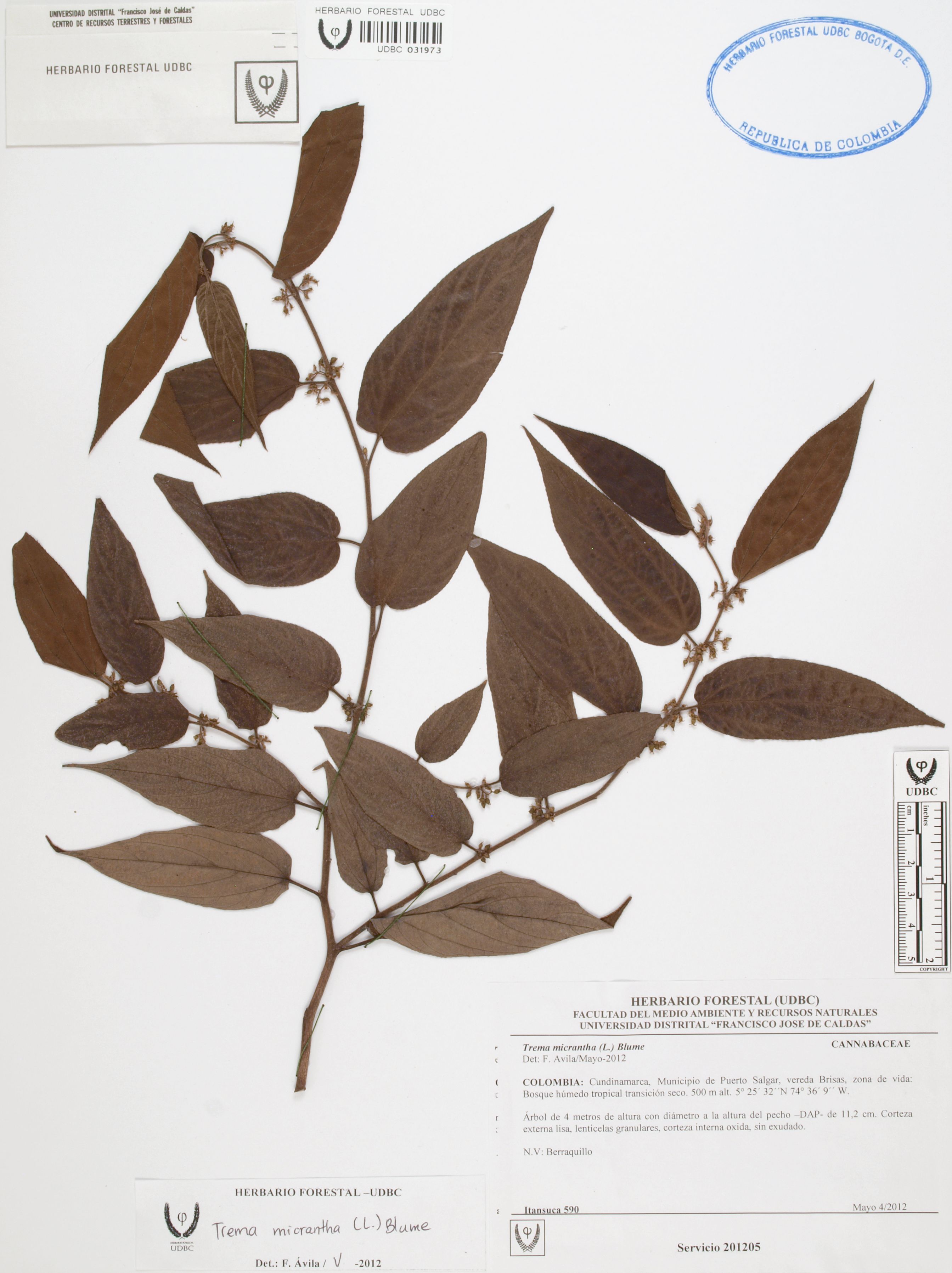 Fotografía del ejemplar SD 590, determinado como Trema micranthum en el año 2012