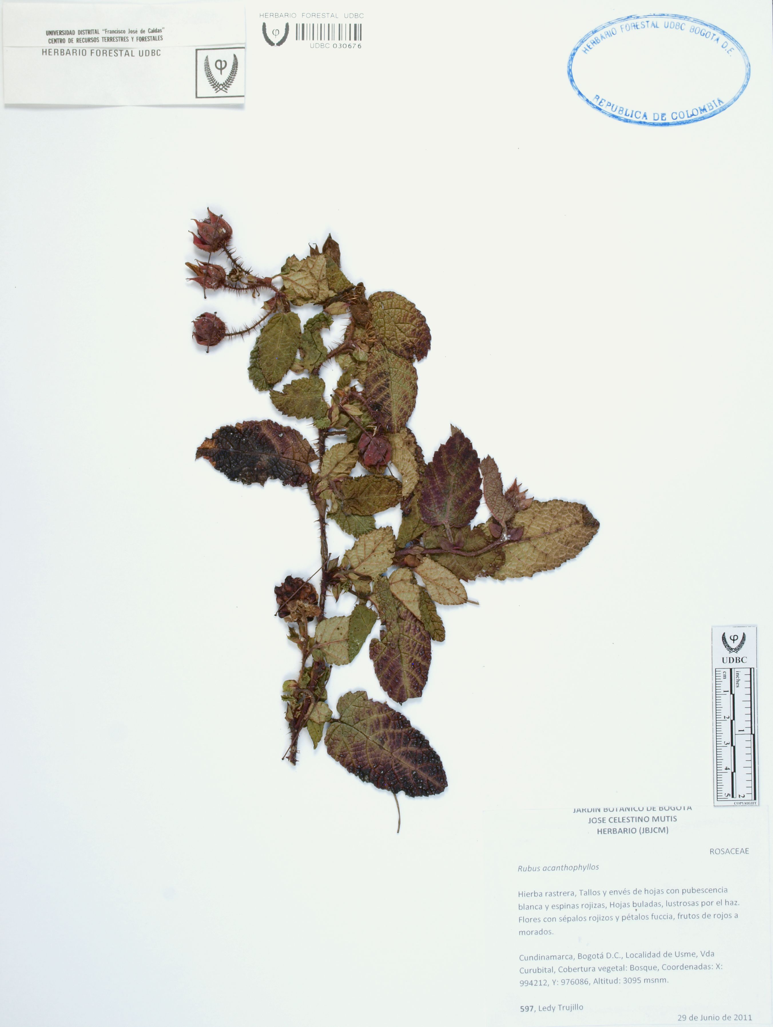 Fotografía del ejemplar Trujillo, L. 597, determinado como Rubus acanthophyllos