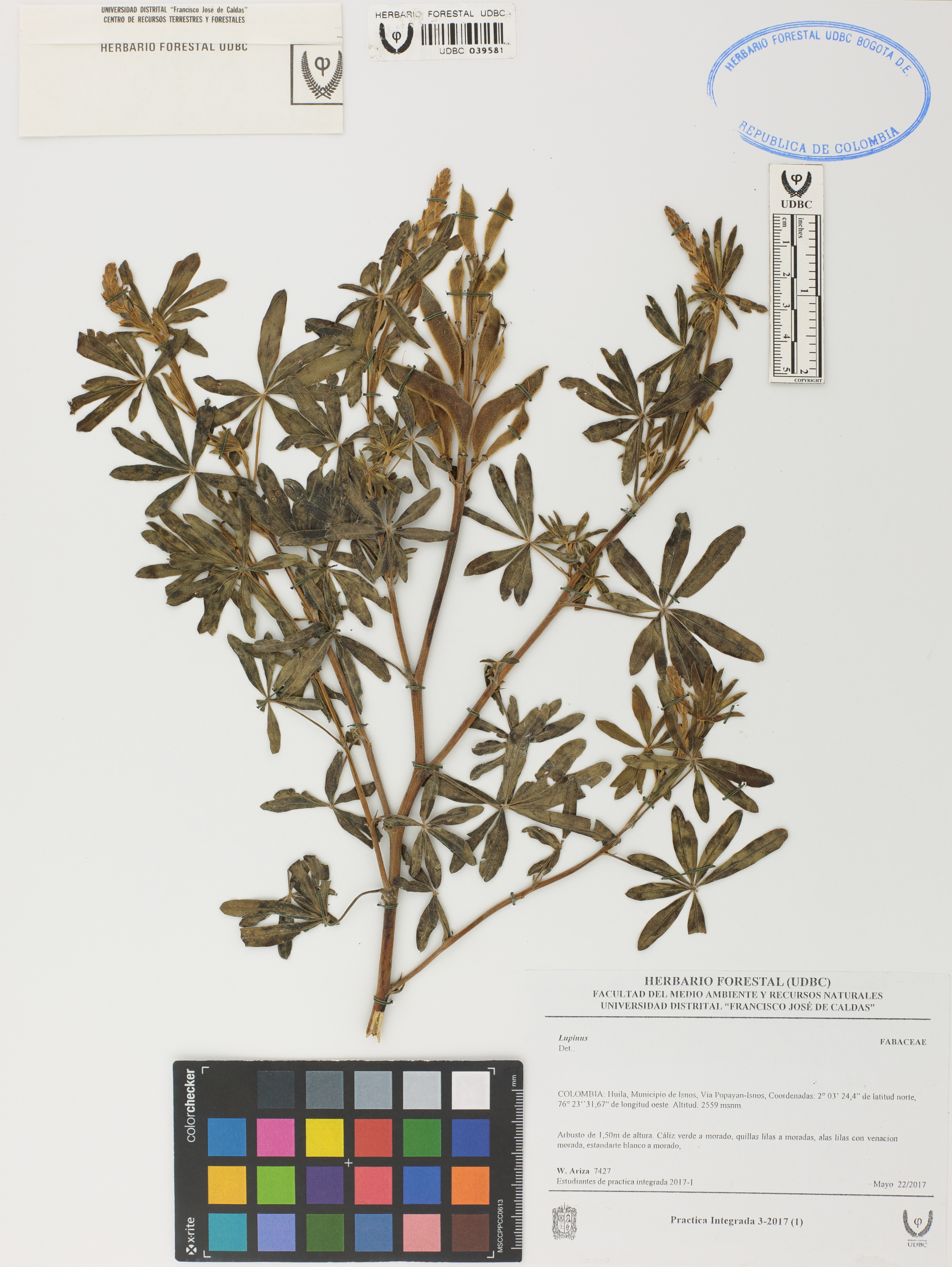 Fotografía del ejemplar Ariza, W. 7427, determinado como Lupinus sp.