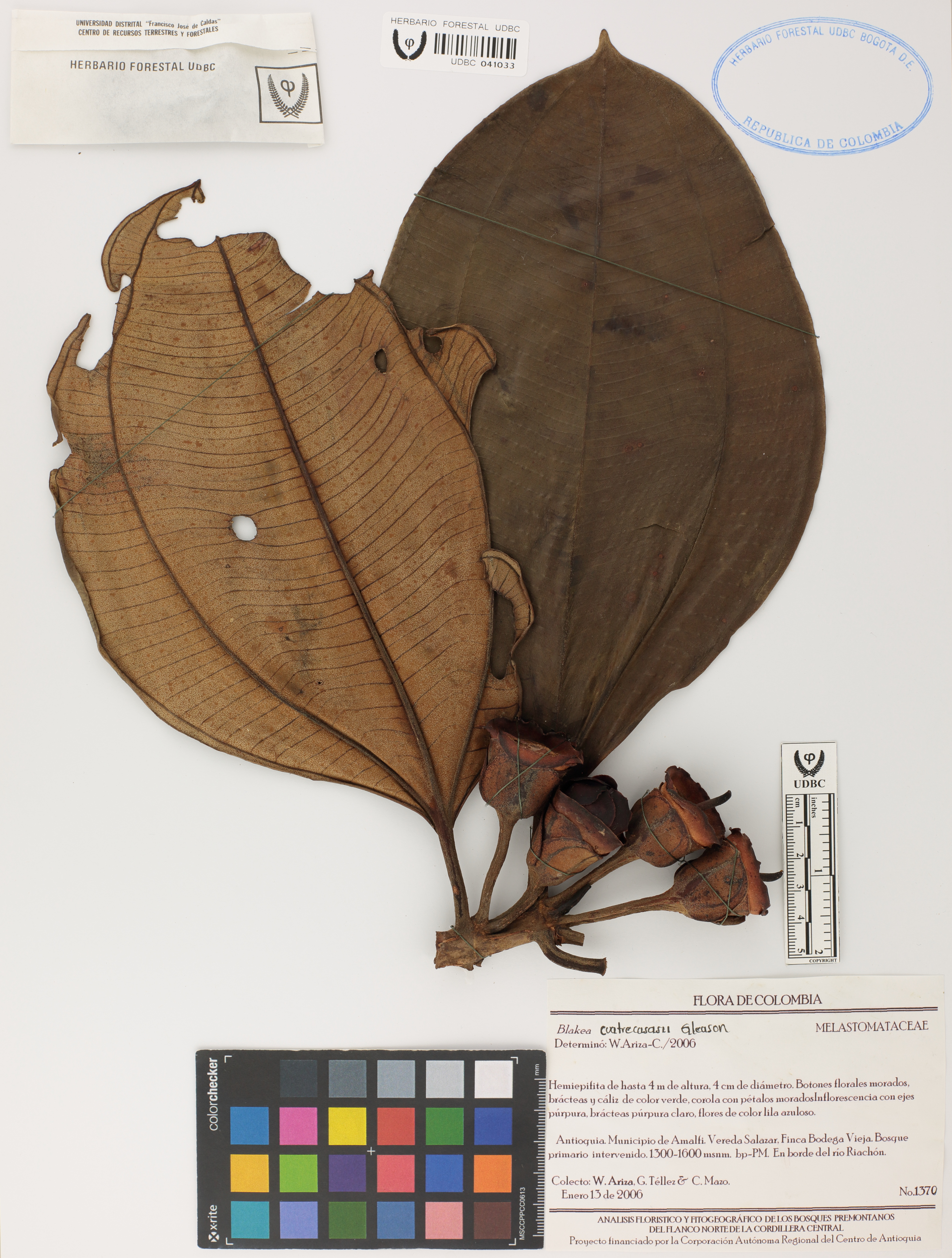 Fotografía del ejemplar Ariza, W. 1370|, determinado como Blakea cuatrecasasii en el año 2006