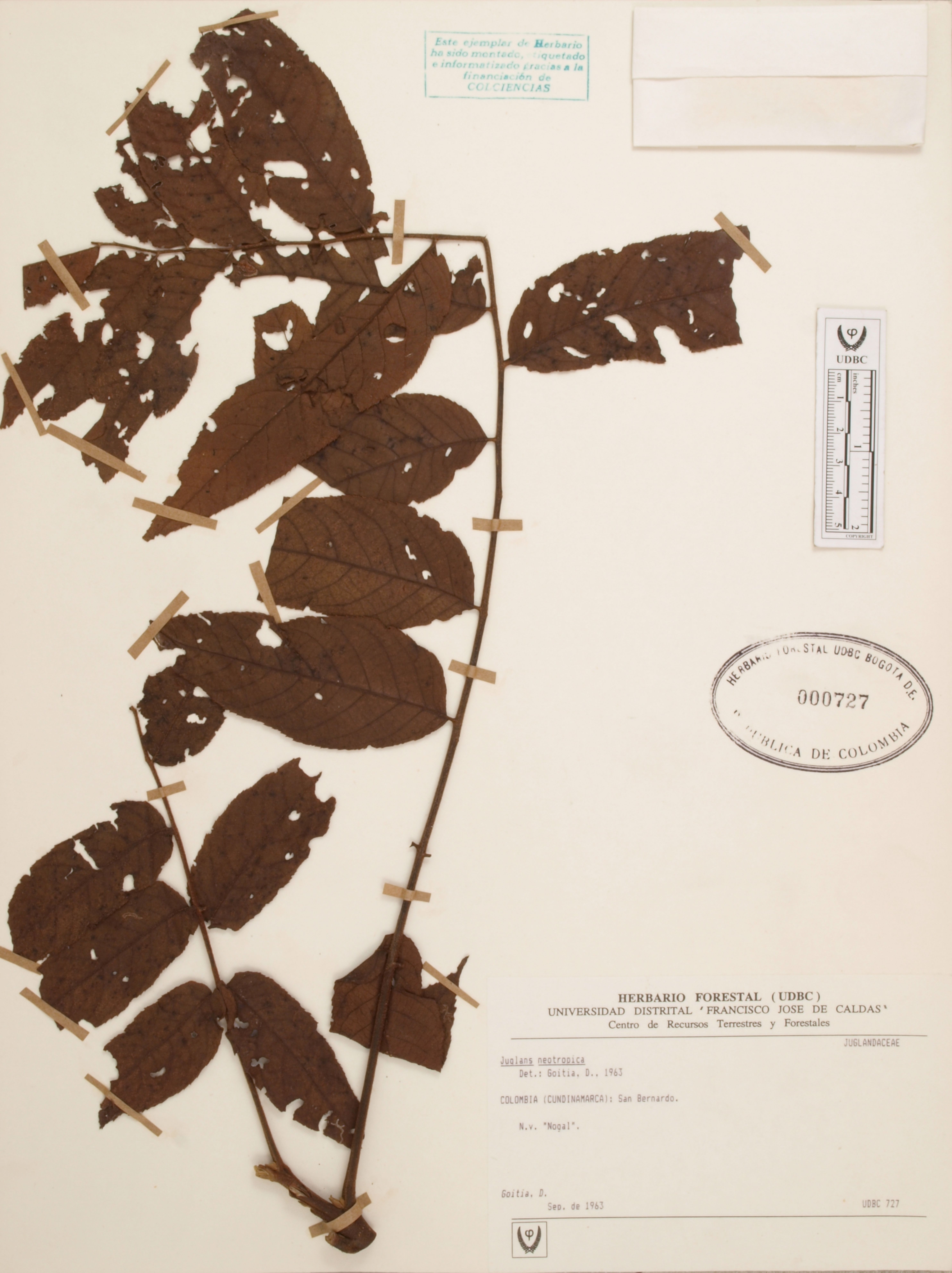 Fotografía del ejemplar Goitia, D., determinado como Juglans neotropica en el año 1963