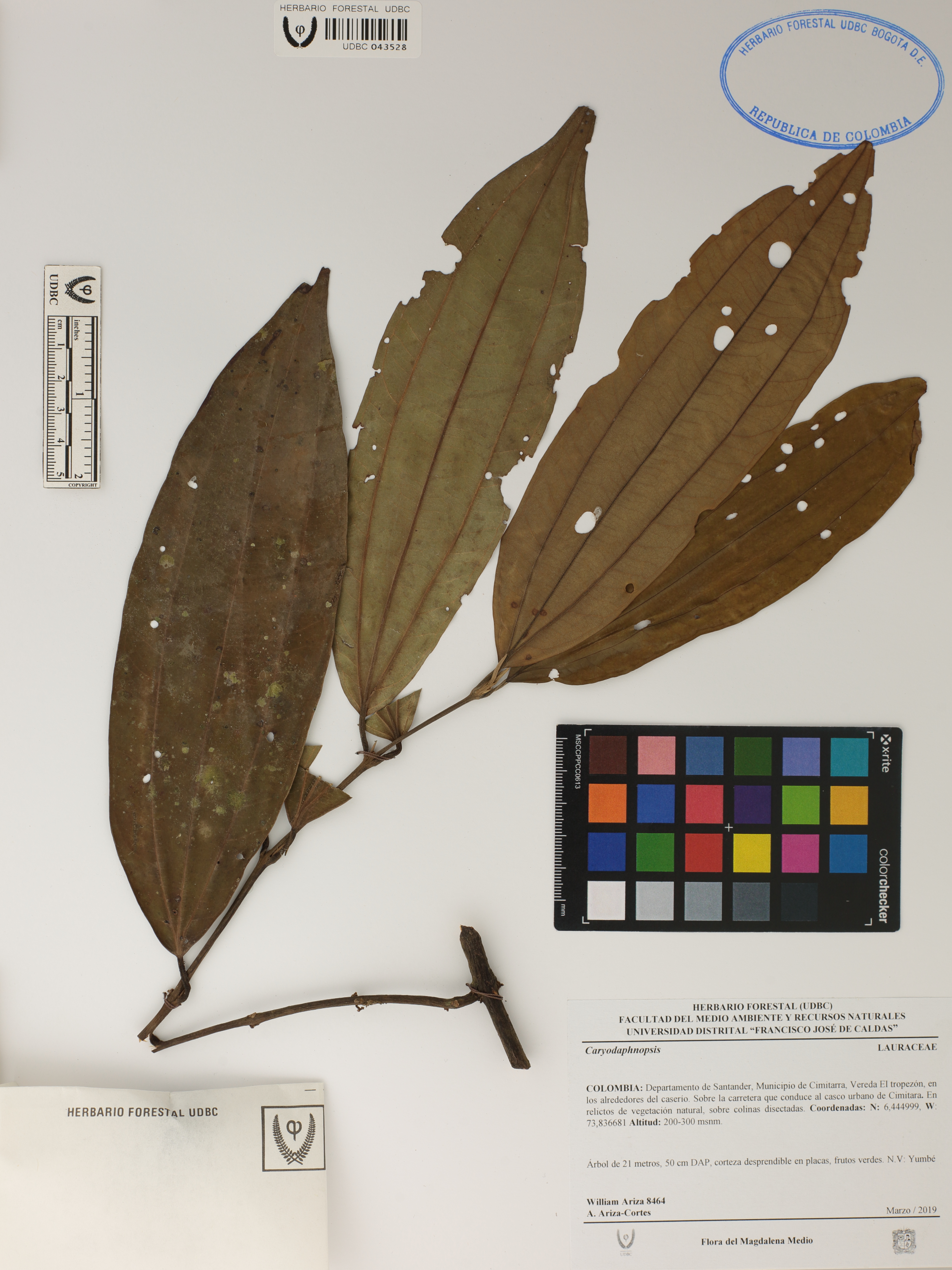 Fotografía del ejemplar Ariza, W. 8464, determinado como Caryodaphnopsis yariguiensis en el año 2024