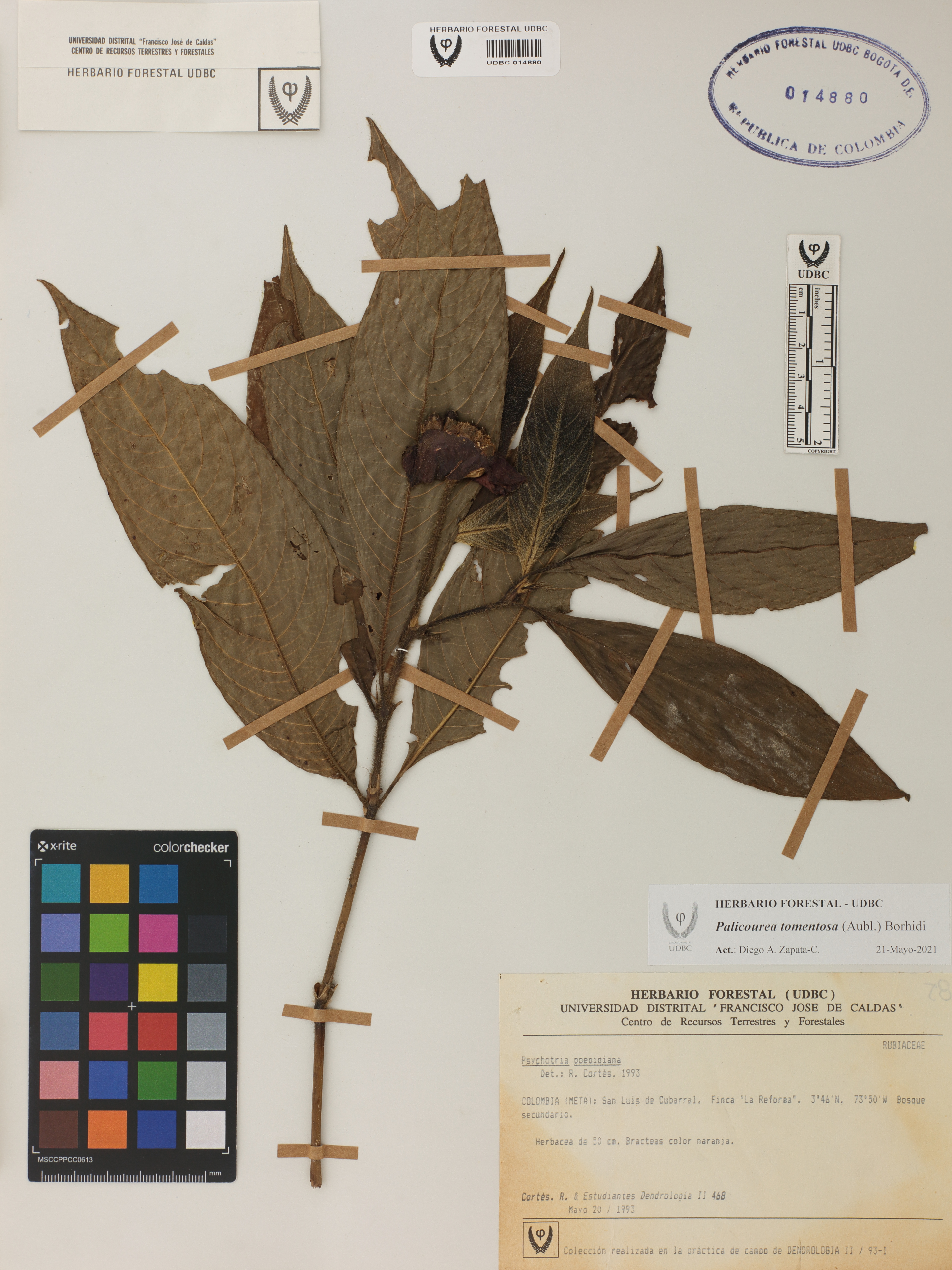 Fotografía del ejemplar Cortés-B., R. 468, determinado como Palicourea tomentosa en el año 1993