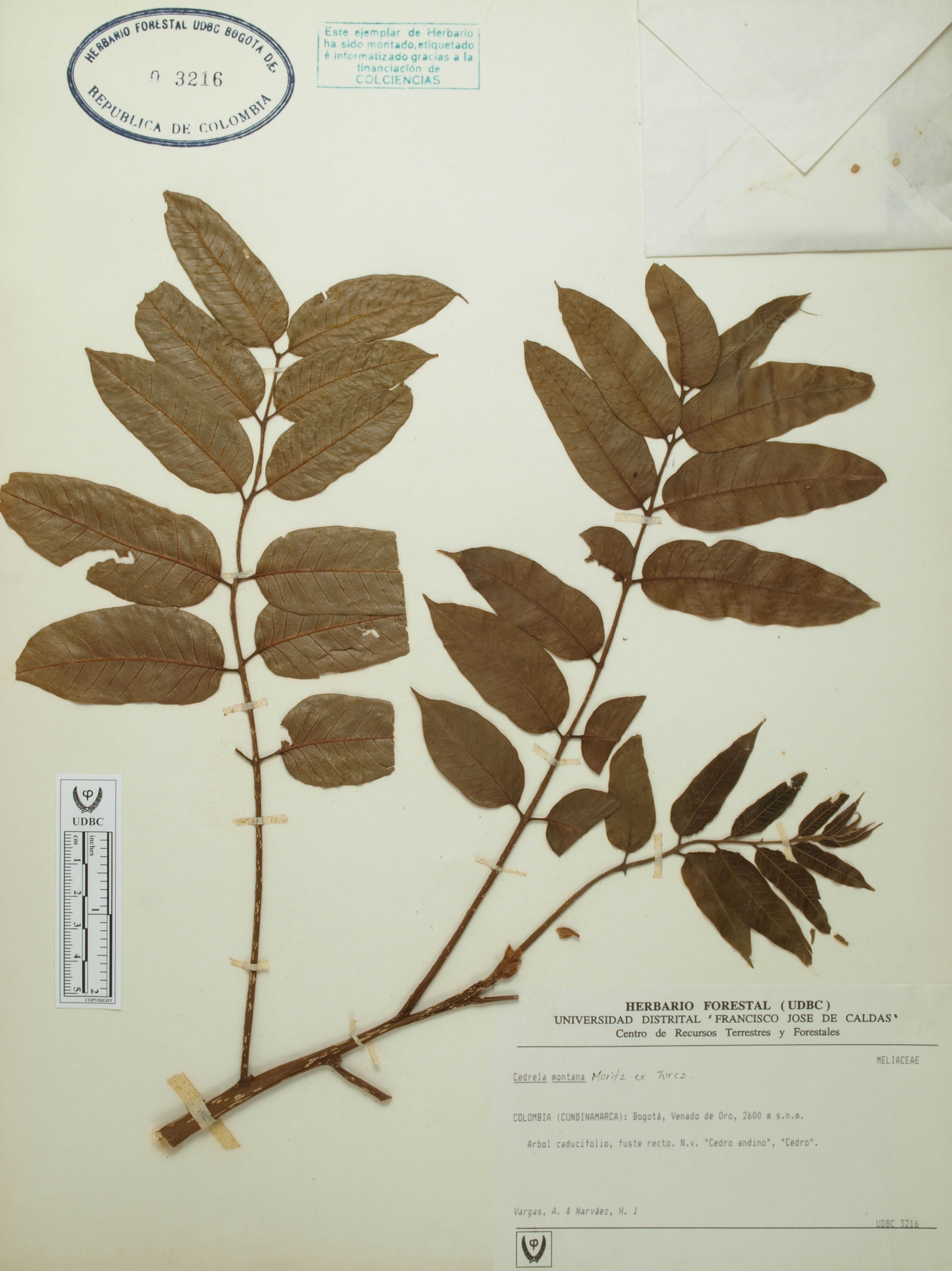 Fotografía del ejemplar Vargas, A. 1, determinado como Cedrela montana