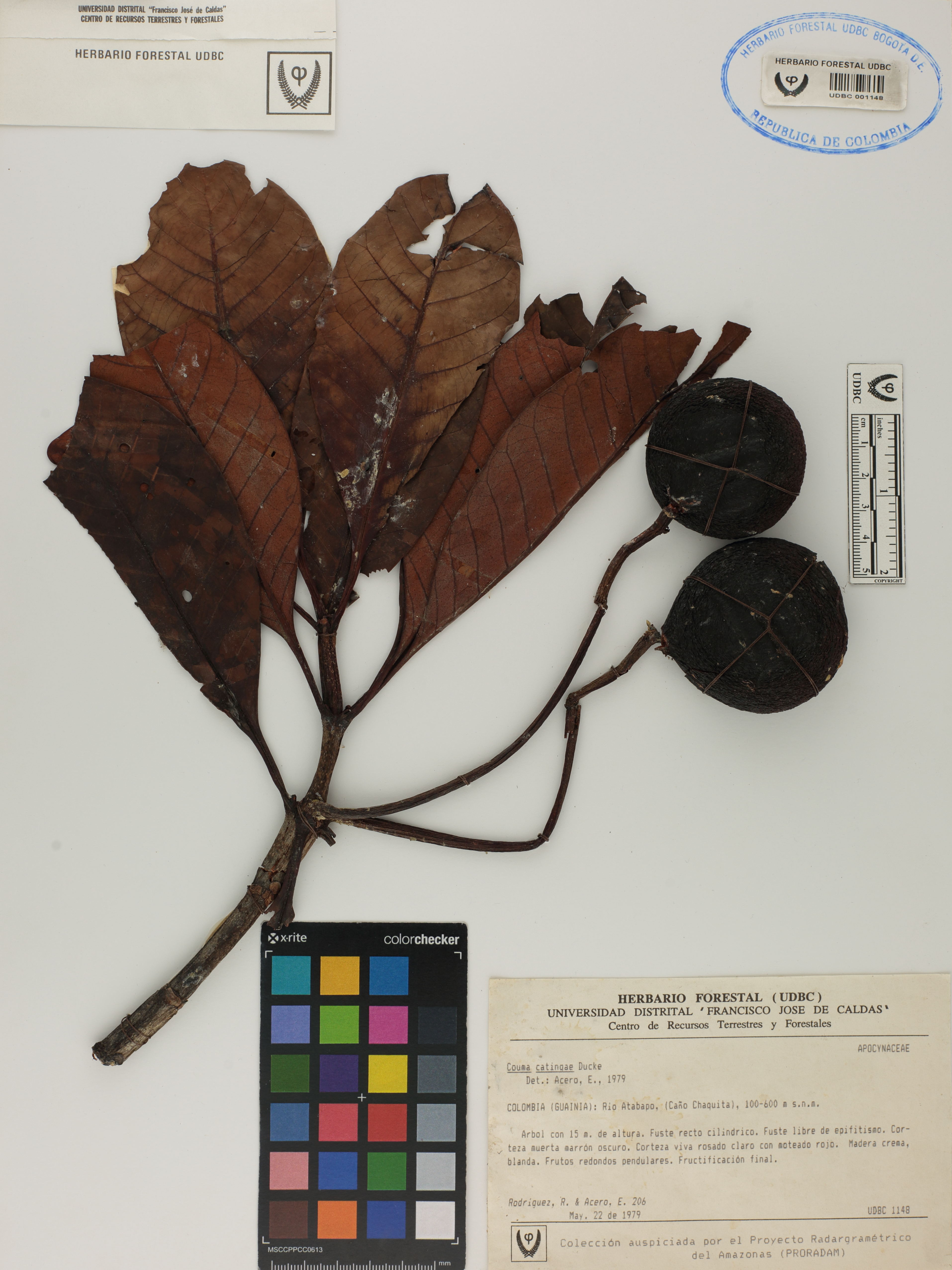 Fotografía del ejemplar Rodríguez, R. 206, determinado como Couma catingae en el año 1979