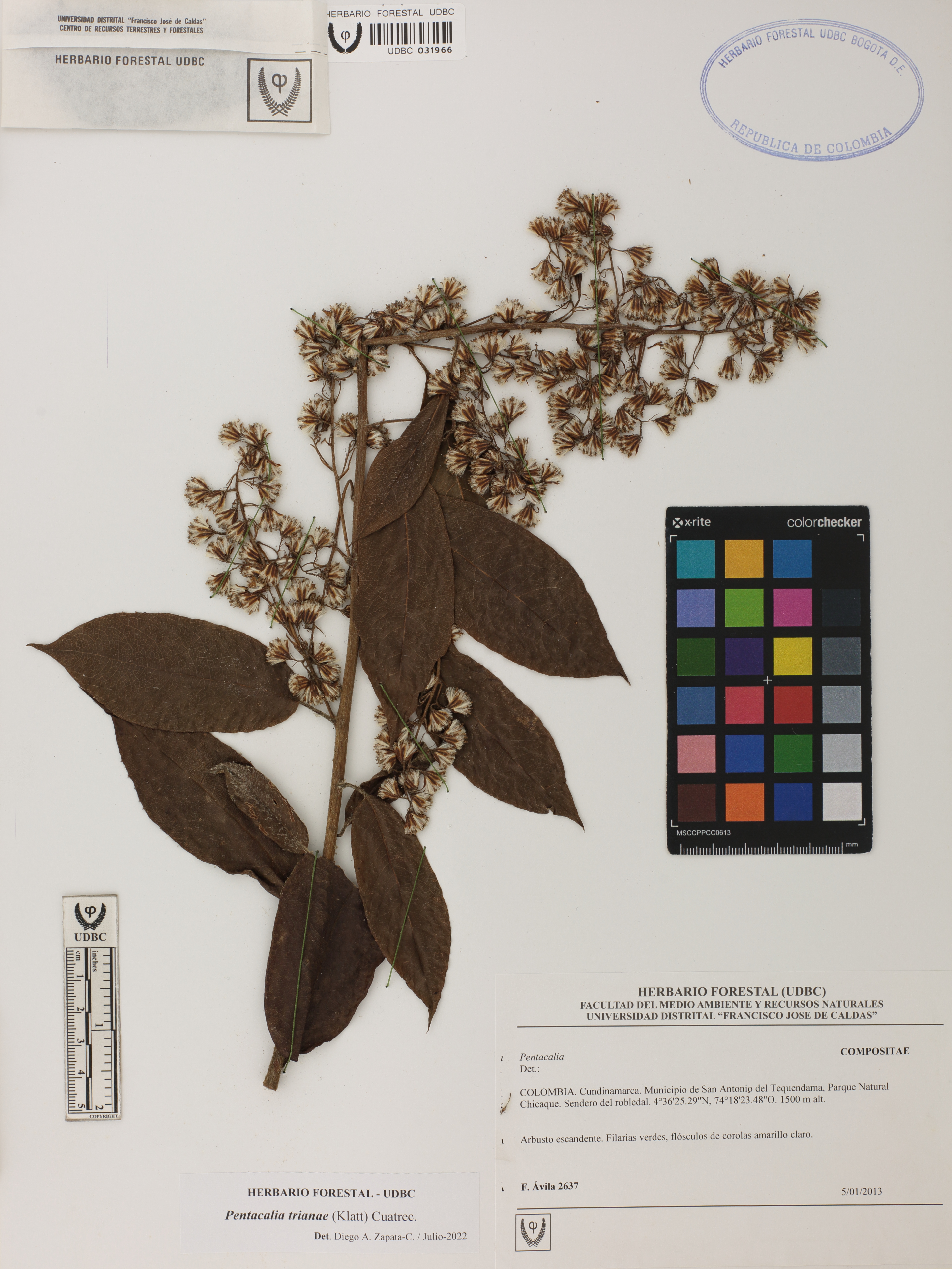Fotografía del ejemplar Ávila, F. 2637, determinado como Pentacalia trianae en el año 2022