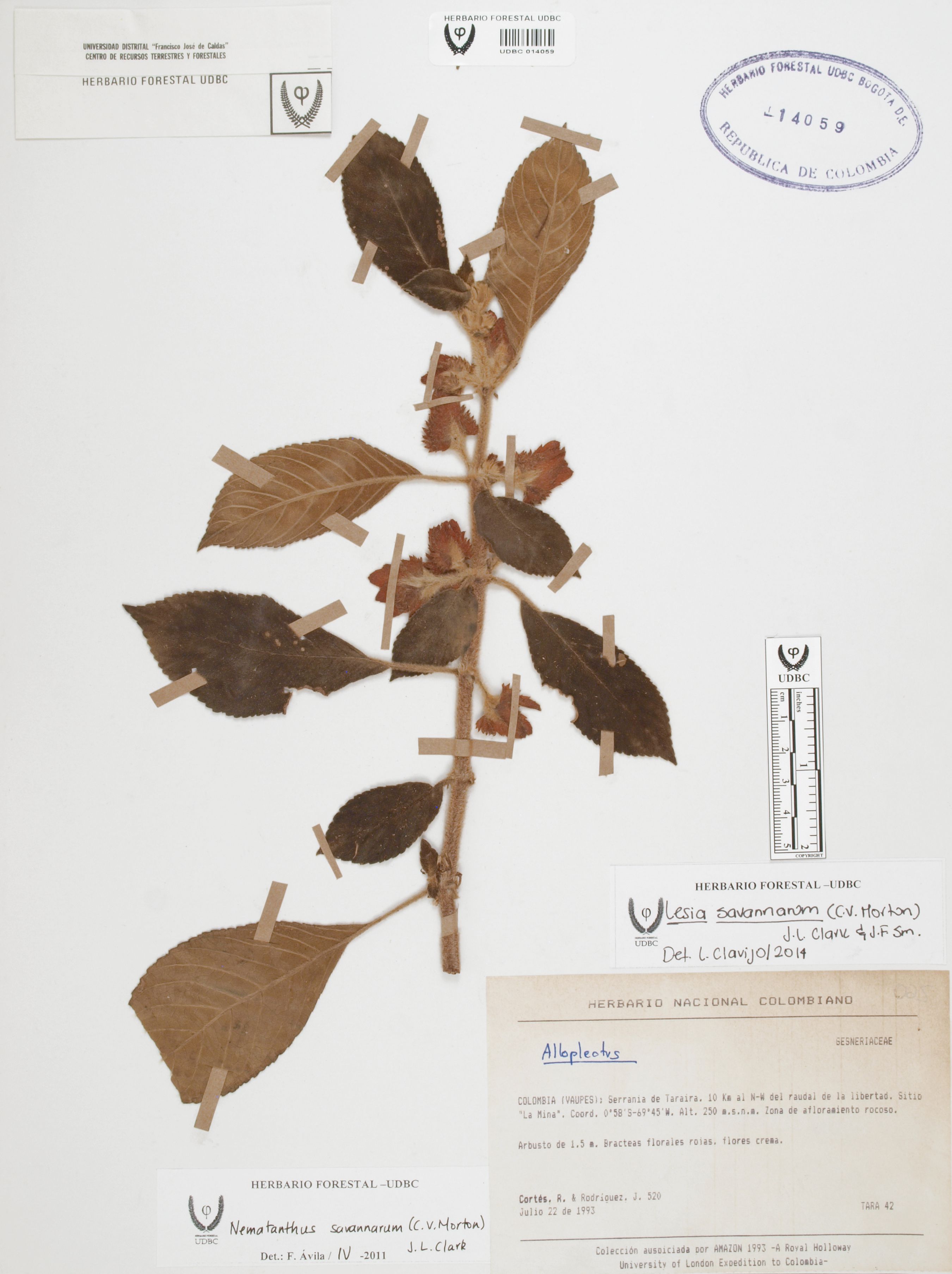 Fotografía del ejemplar Cortés, R. 520, determinado como Lesia savannarum en el año 2014
