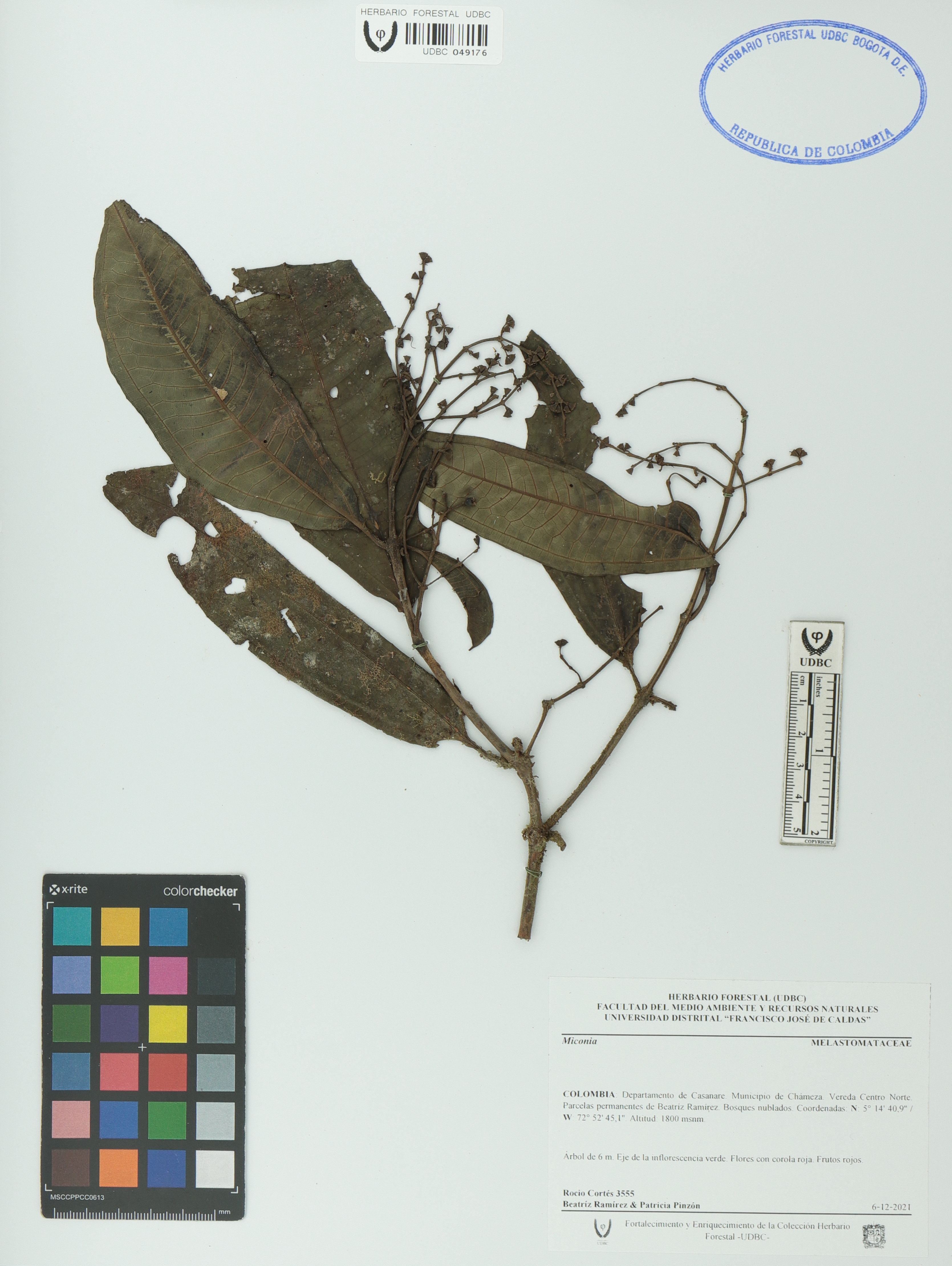 Fotografía del ejemplar Cortés, R. 3555, determinado como Miconia sp.