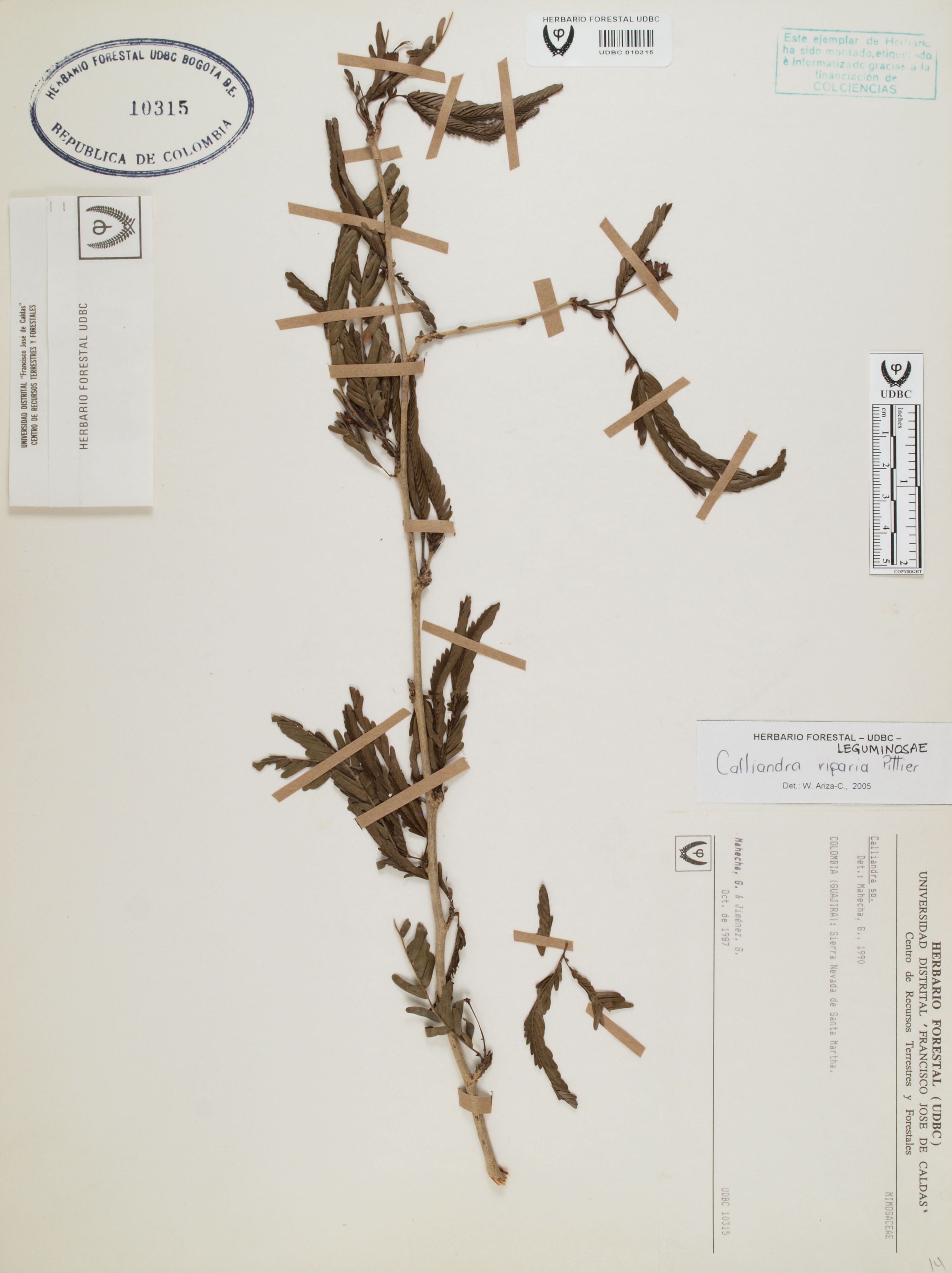 Fotografía del ejemplar Mahecha, G., determinado como Calliandra riparia en el año 2005