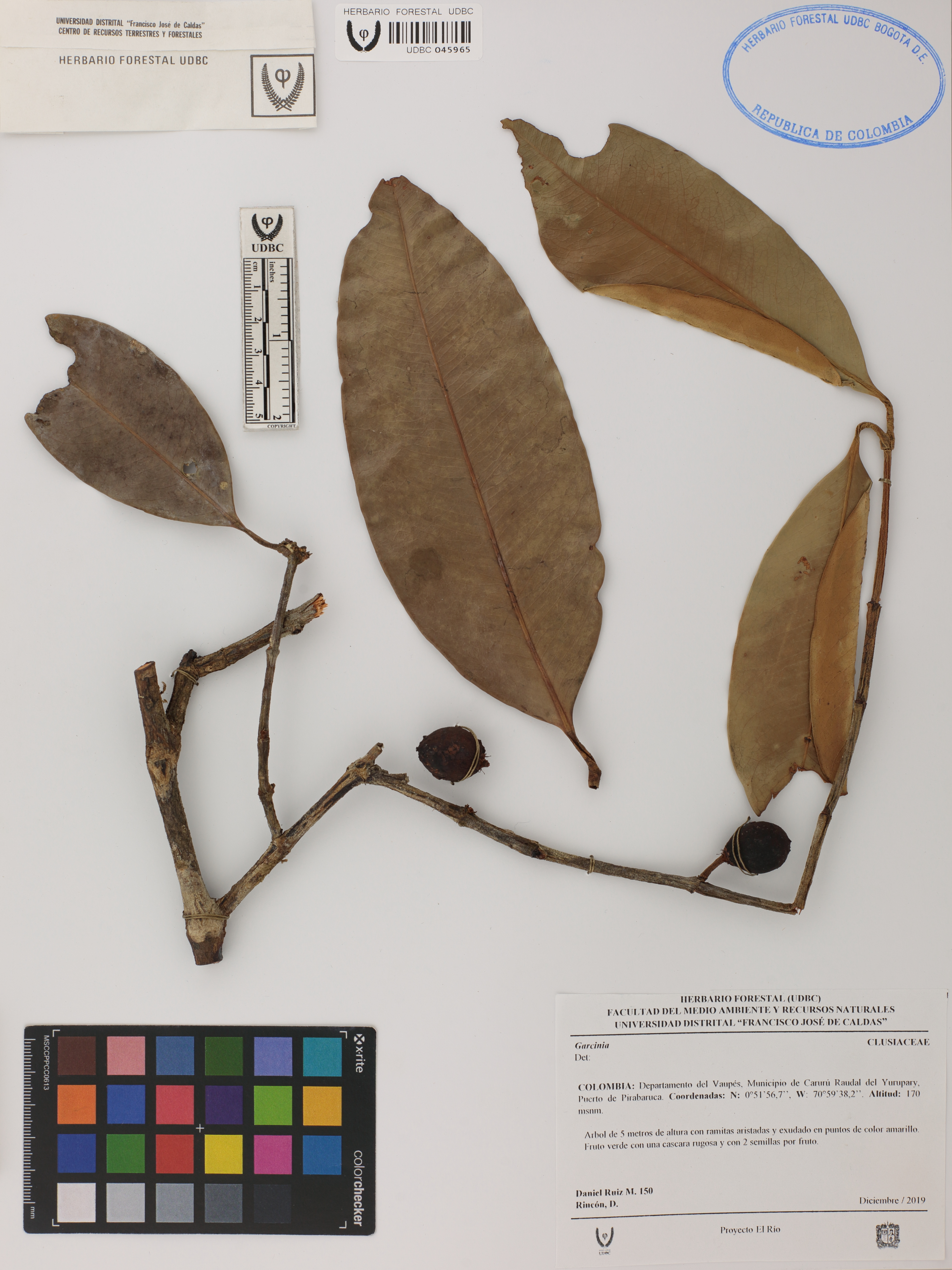 Fotografía del ejemplar Ruiz, D. 150, determinado como Garcinia leptophylla en el año 2024