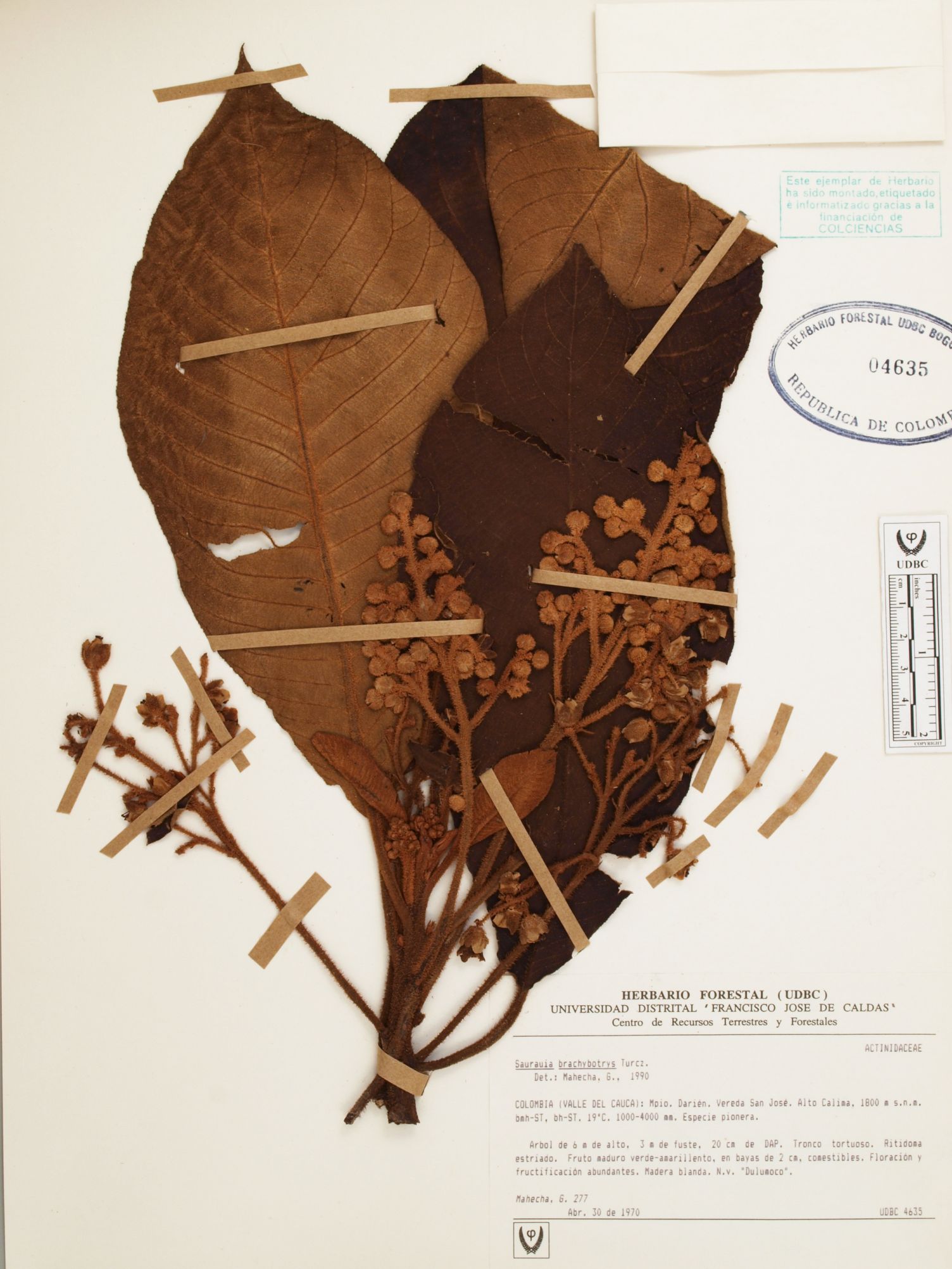 Fotografía del ejemplar Mahecha, G. 277, determinado como Saurauia brachybotrys en el año 1990