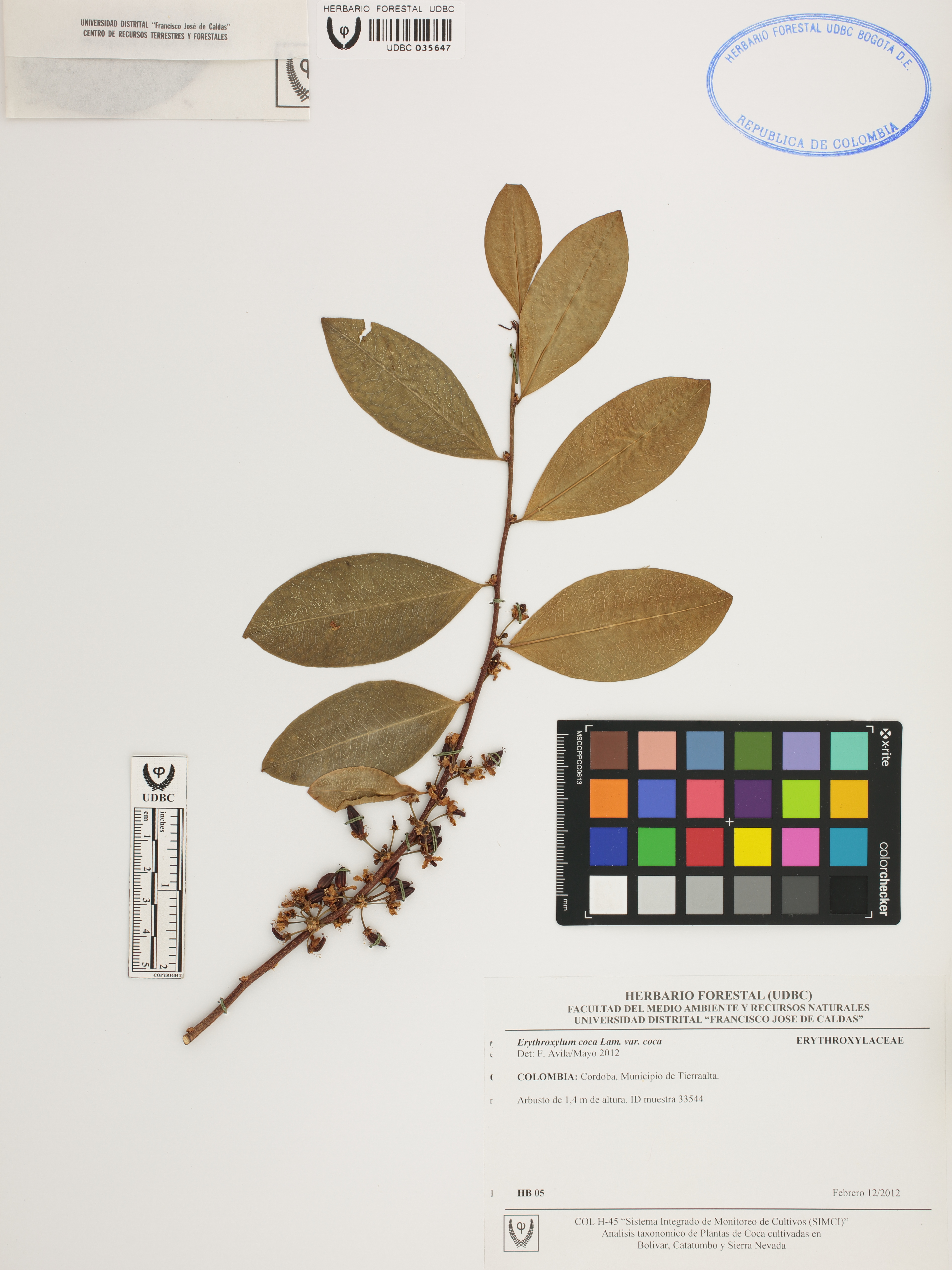 Fotografía del ejemplar SD 5, determinado como Erythroxylum coca var. coca en el año 2012