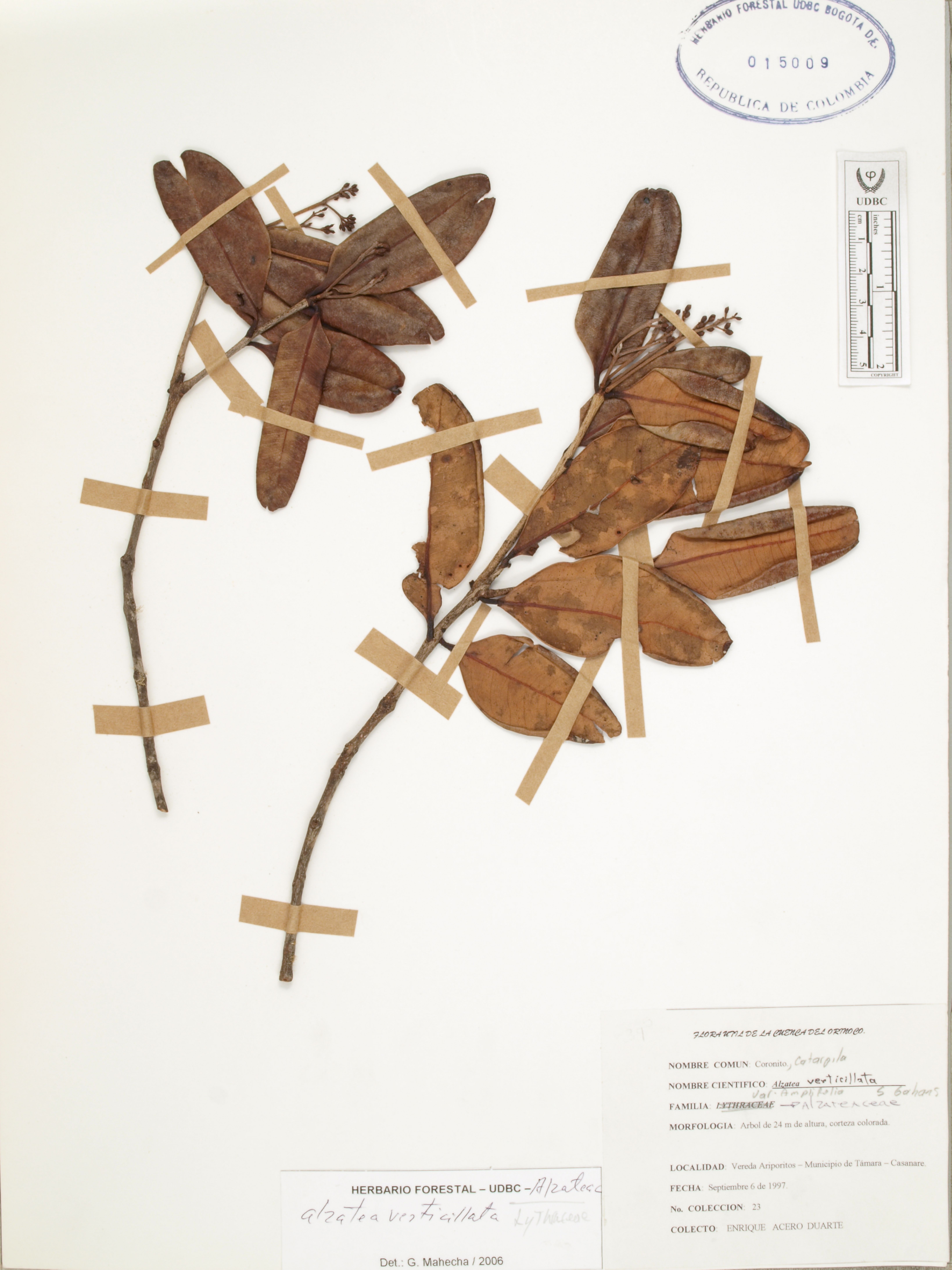 | dc.description | Fotografía del ejemplar Acero, E. 23, determinado como Alzatea verticillata en el año 2006 | |