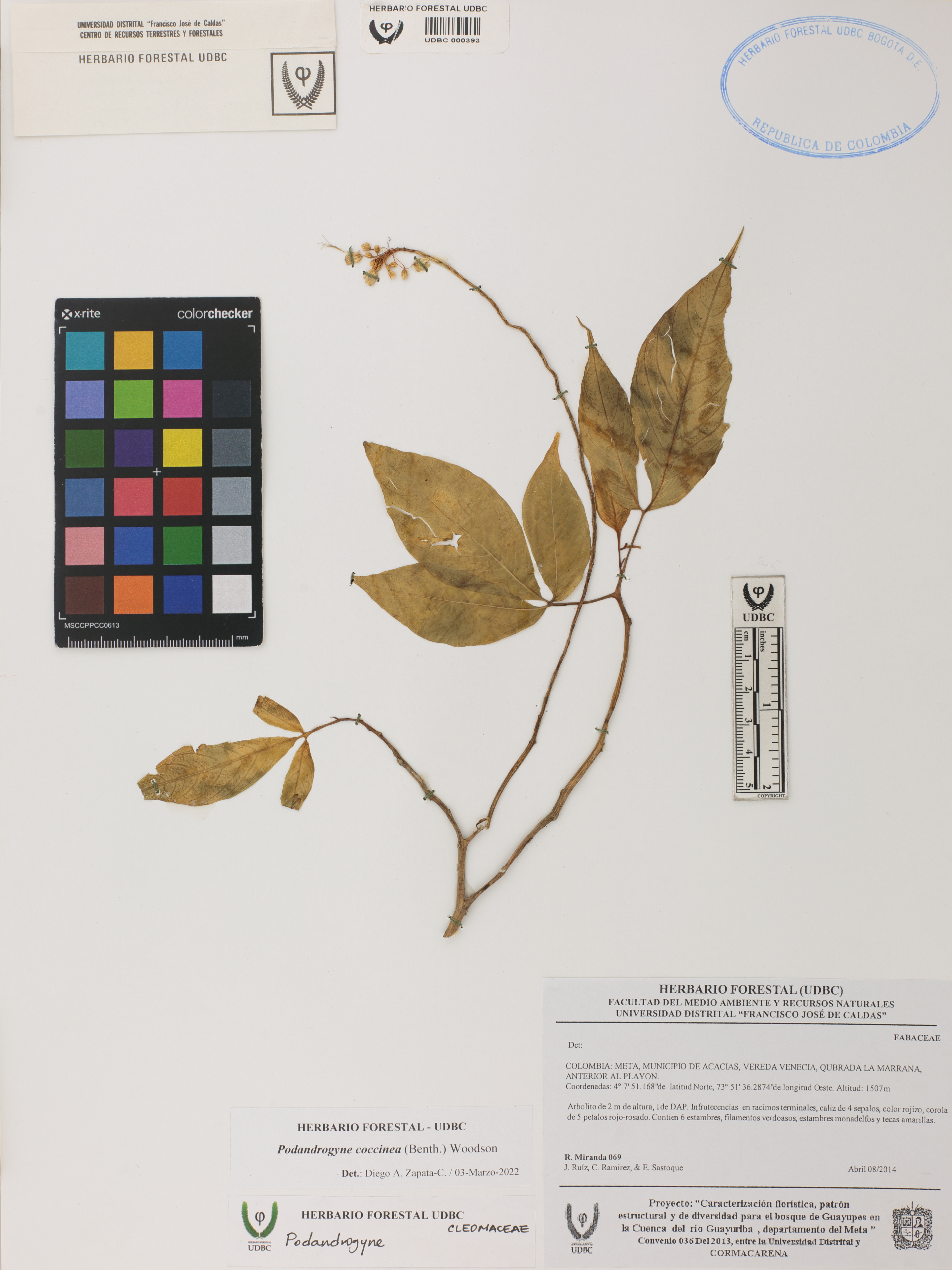 Fotografía del ejemplar Miranda, R. 69, determinado como Podandrogyne coccinea en el año 2022
