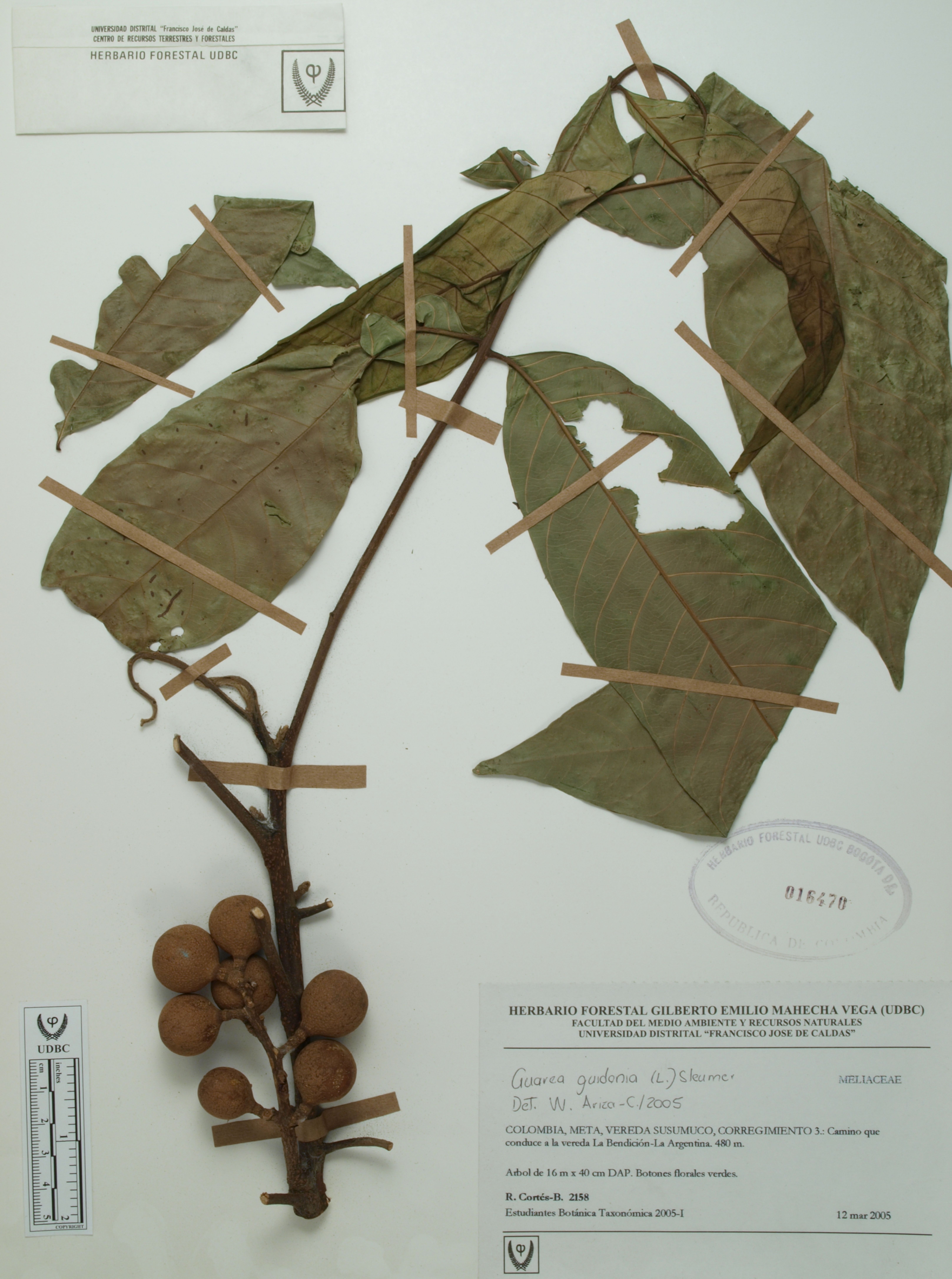 Fotografía del ejemplar Cortés-B., R. 2158, determinado como Guarea guidonia en el año 2005