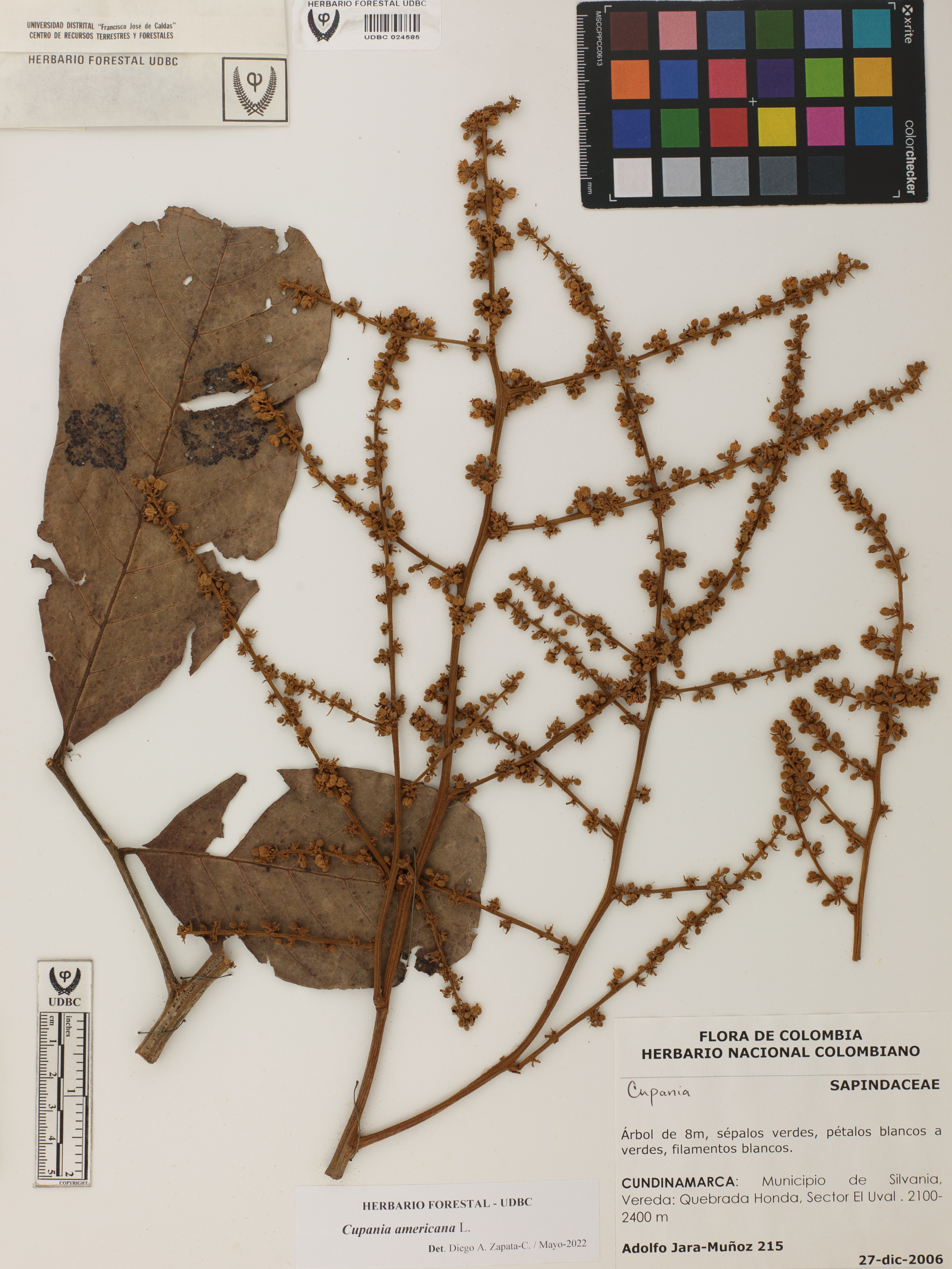 Fotografía del ejemplar Jara, A. 215, determinado como Cupania americana en el año 2022