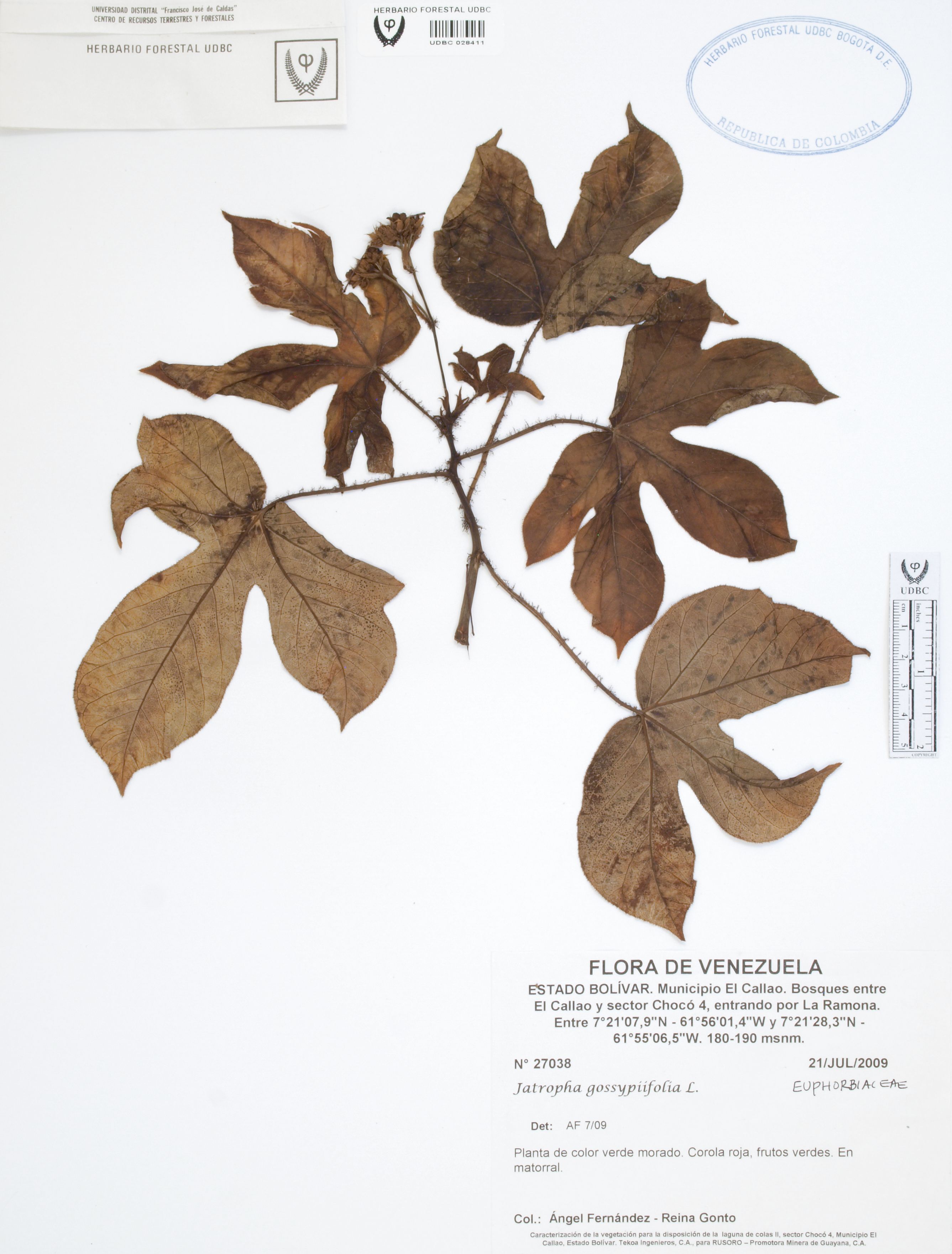 | dc.description | Fotografía del ejemplar Fernández, A. 27038, determinado como Jatropha gossypiifolia en el año 2009 | |