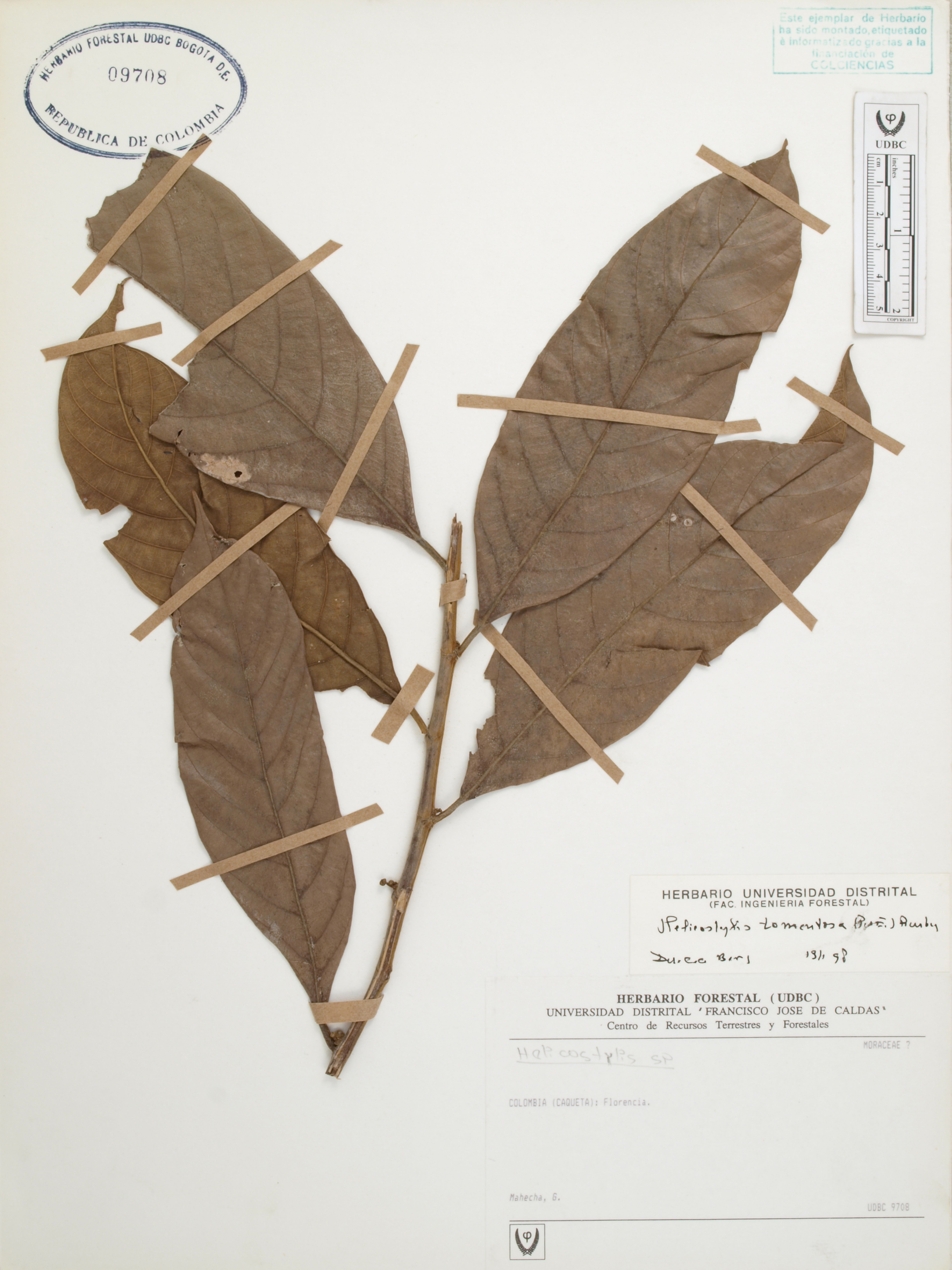 Fotografía del ejemplar Mahecha, G., determinado como Helicostylis tomentosa en el año 1997