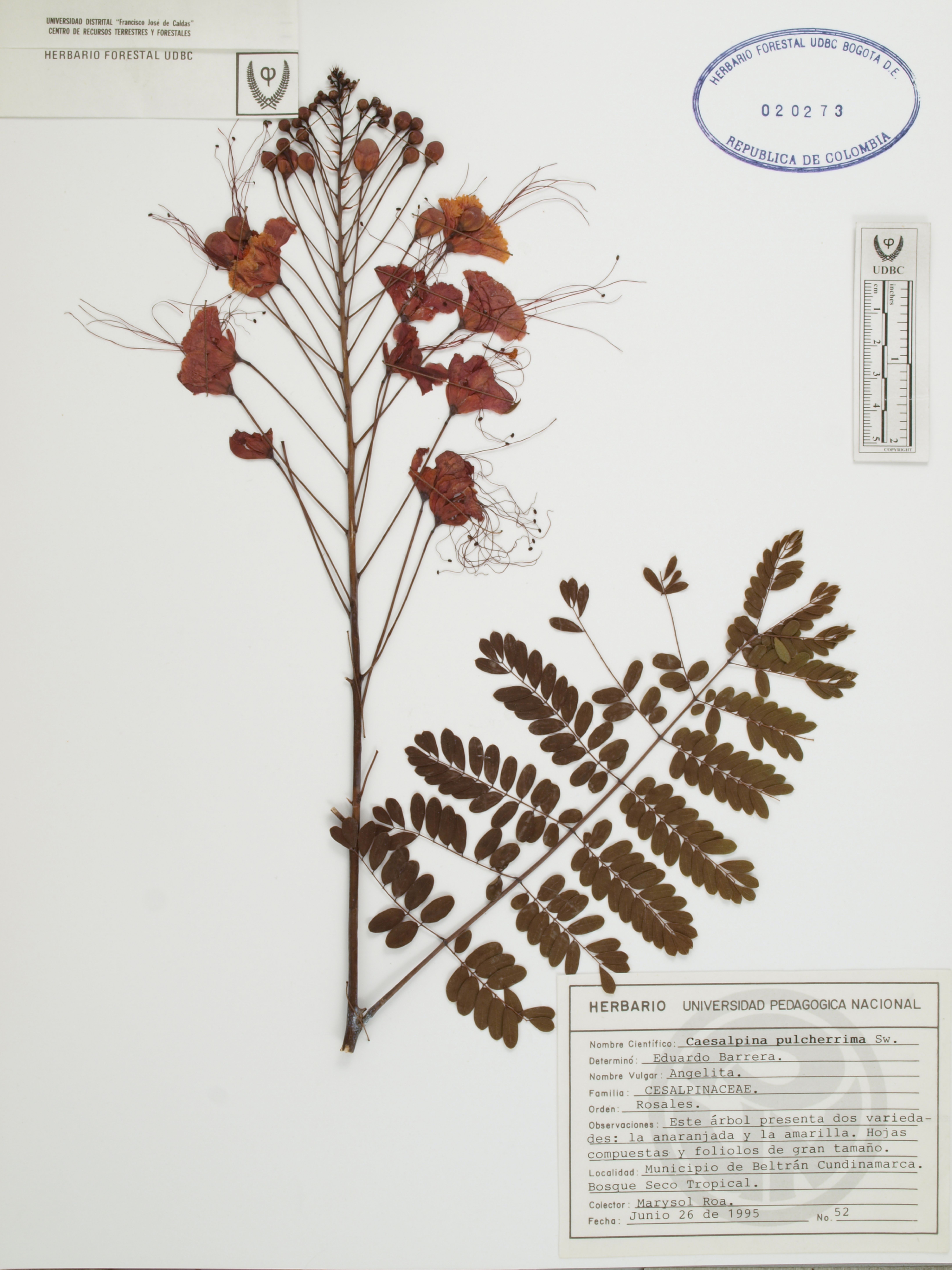 Fotografía del ejemplar Roa, M. 52, determinado como Caesalpinia pulcherrima