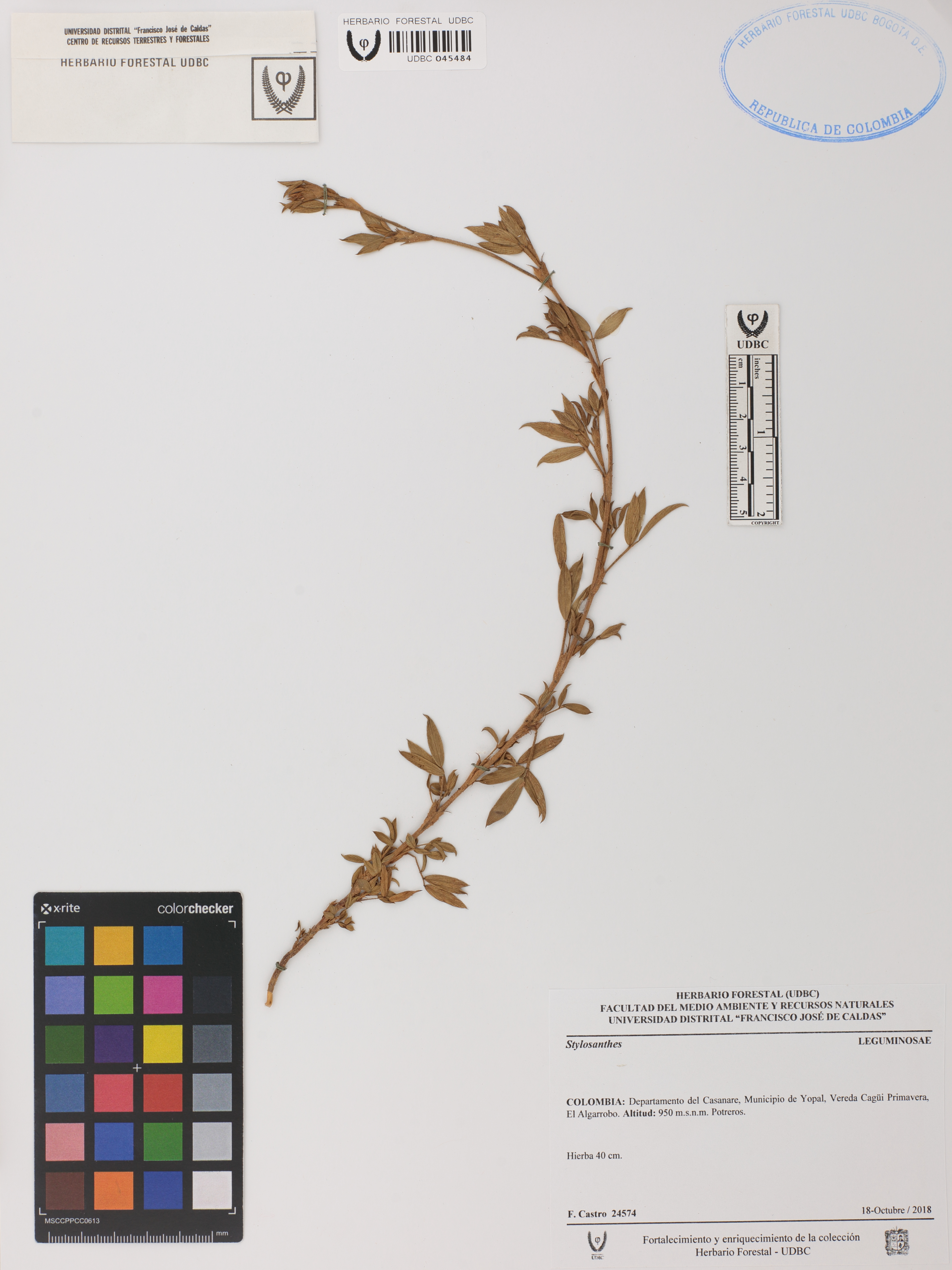 Fotografía del ejemplar Castro, F. 24574, determinado como Stylosanthes sp.