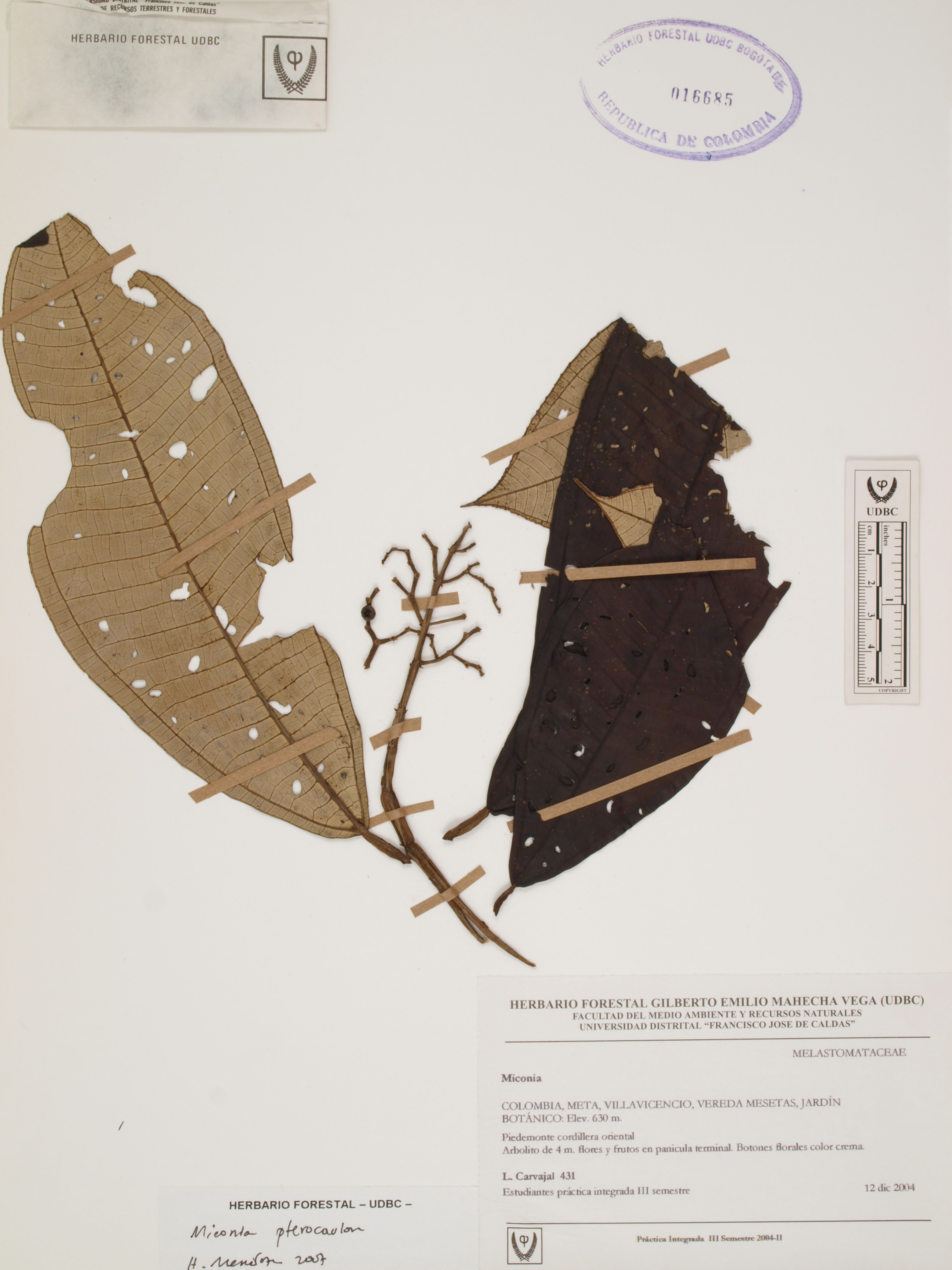 Fotografía del ejemplar Carvajal, L. 431, determinado como Miconia pterocaulon en el año 2007