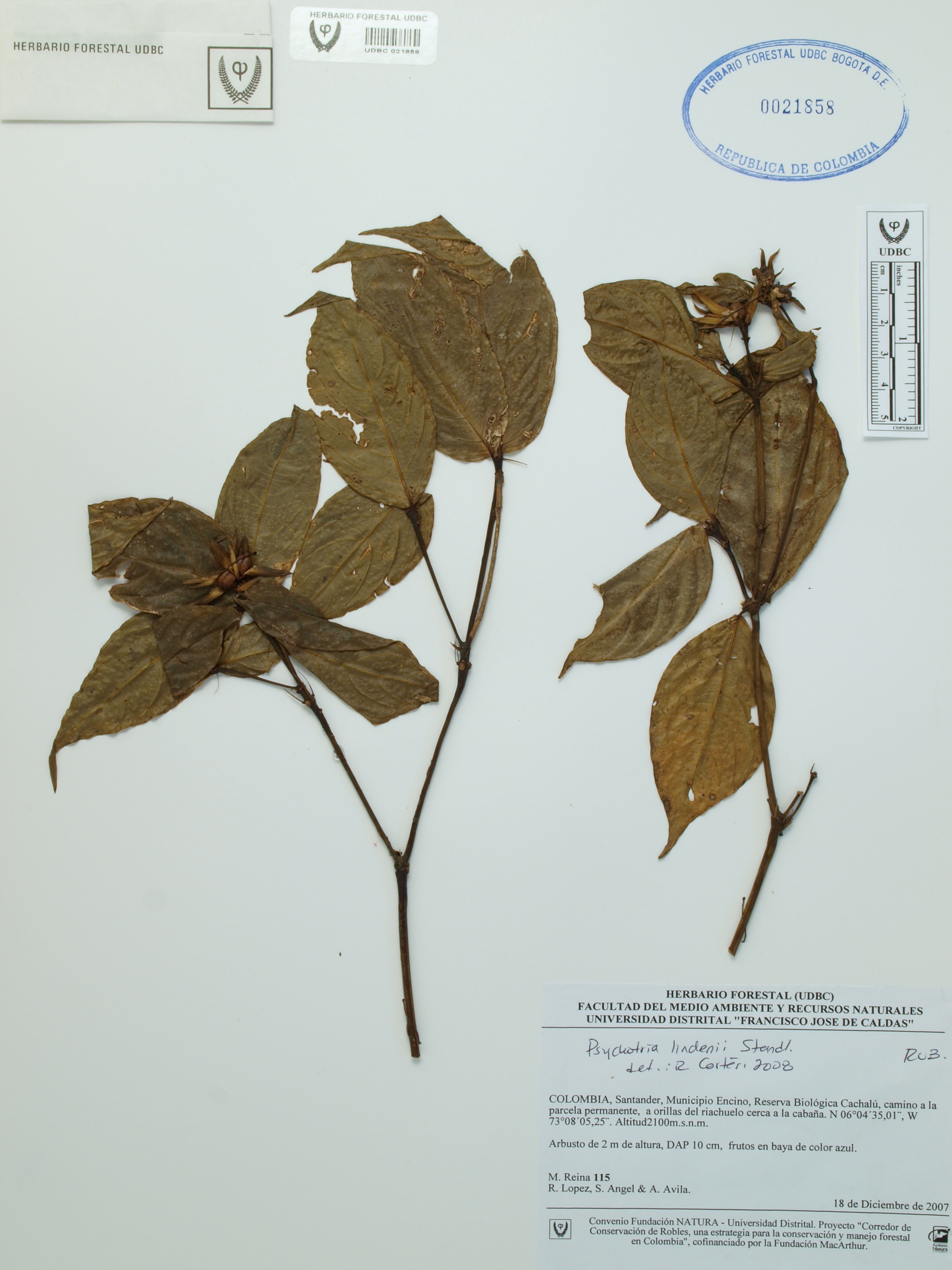 Fotografía del ejemplar Reina, M. 115, determinado como Palicourea raveniana en el año 2008