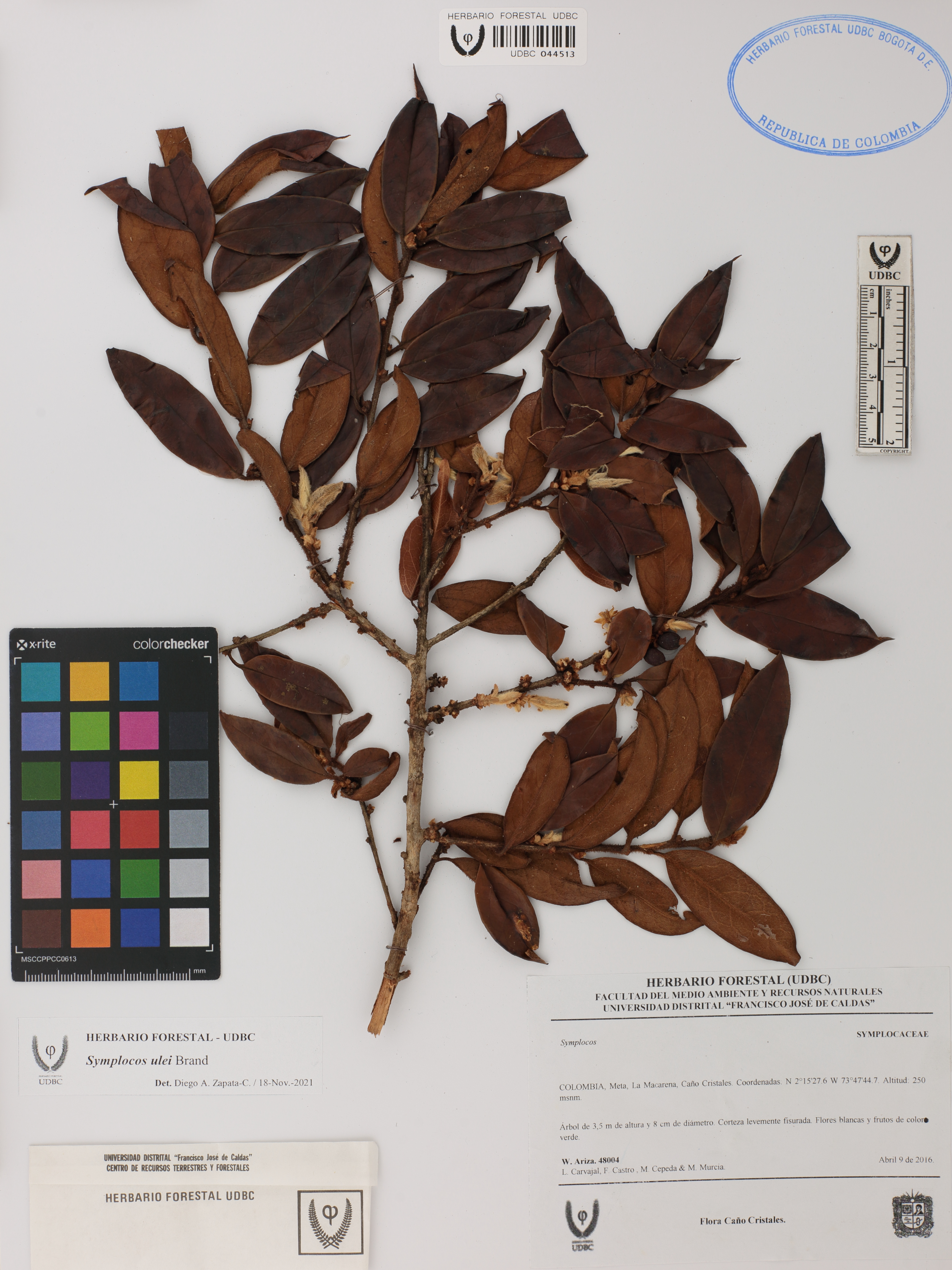 Fotografía del ejemplar Ariza, W. 4804, determinado como Symplocos ulei en el año 2021
