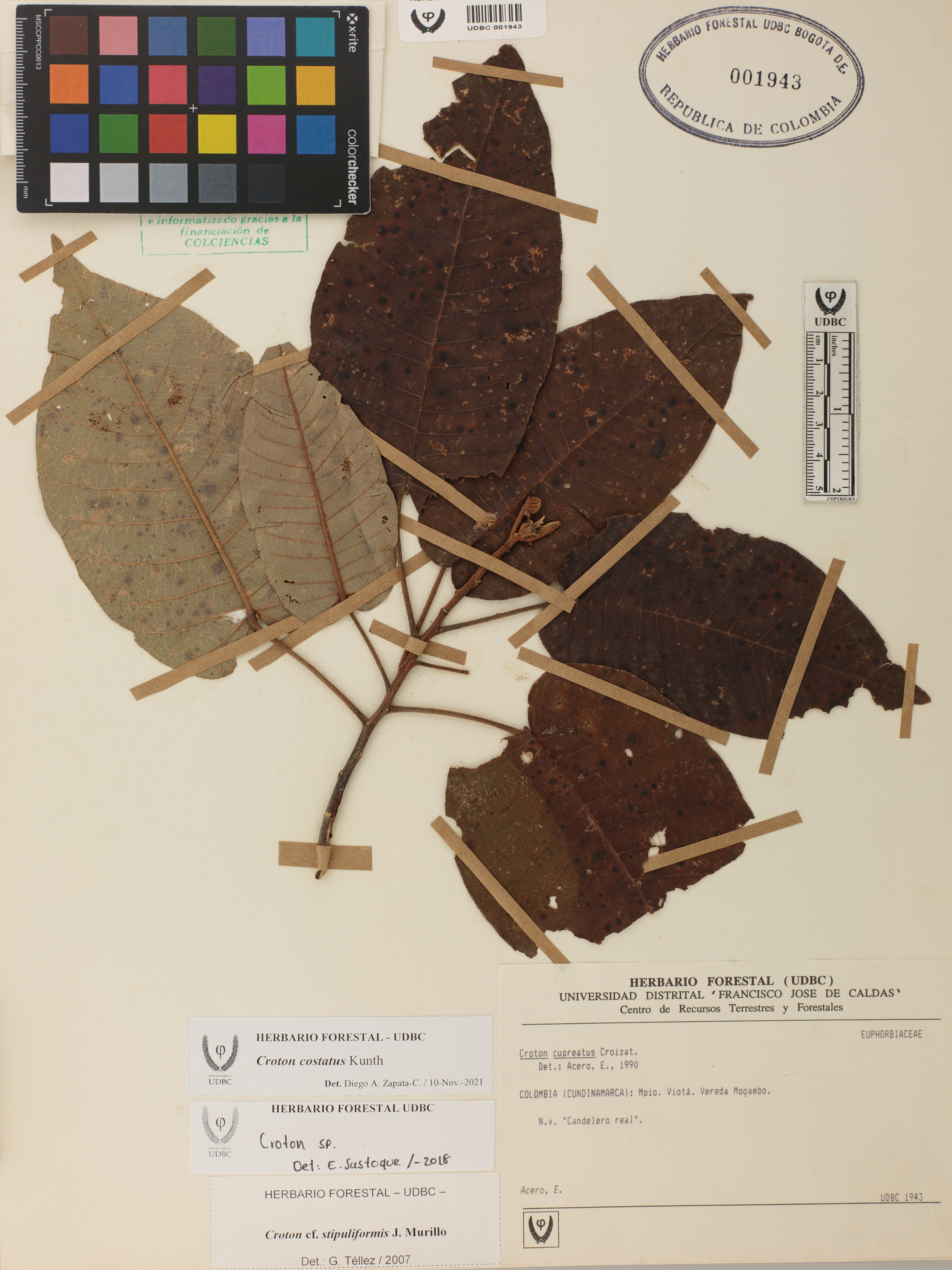 Fotografía del ejemplar Acero, E., determinado como Croton costatus en el año 2021