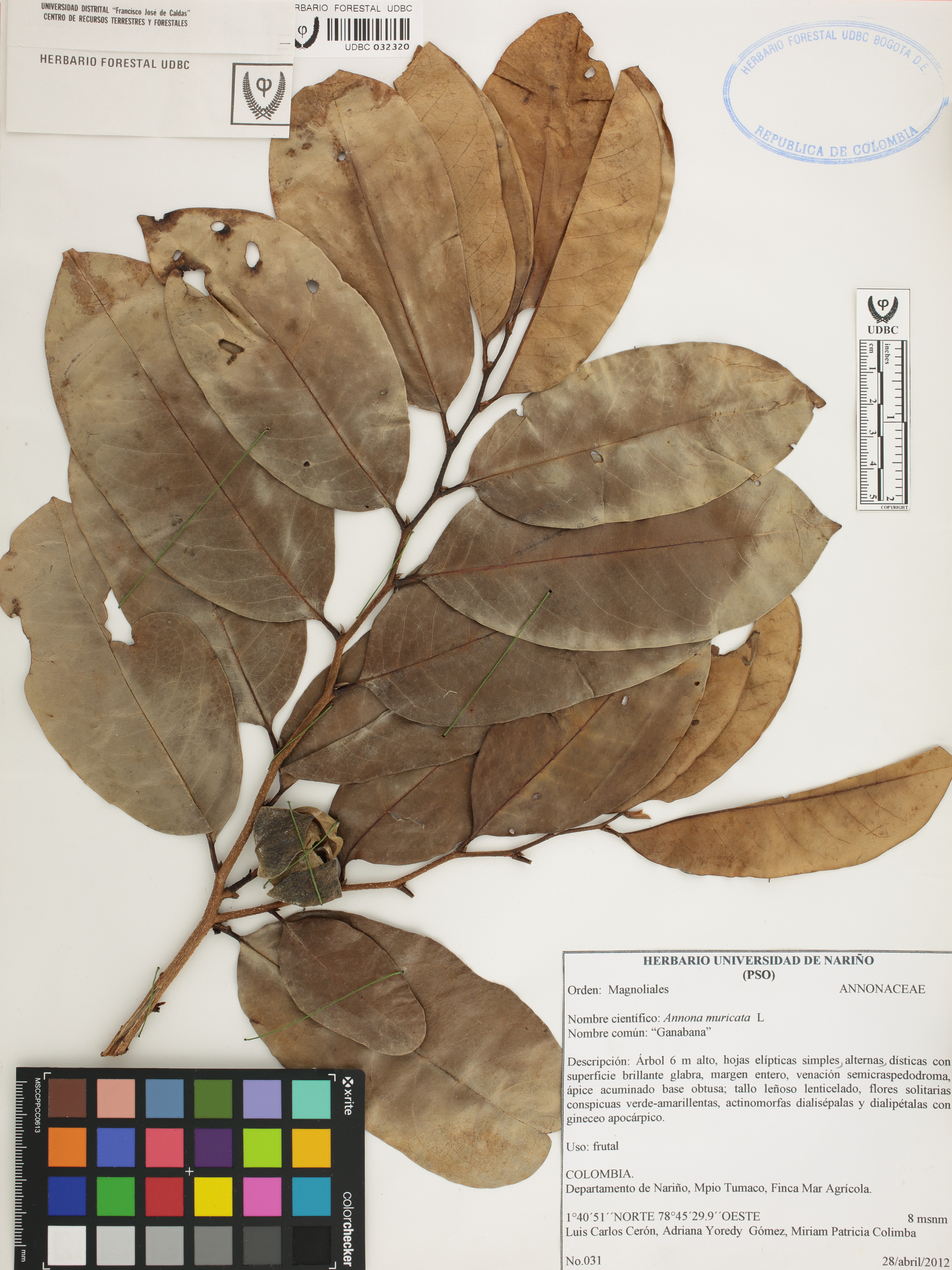 Fotografía del ejemplar Cerón, L. 31, determinado como Annona muricata
