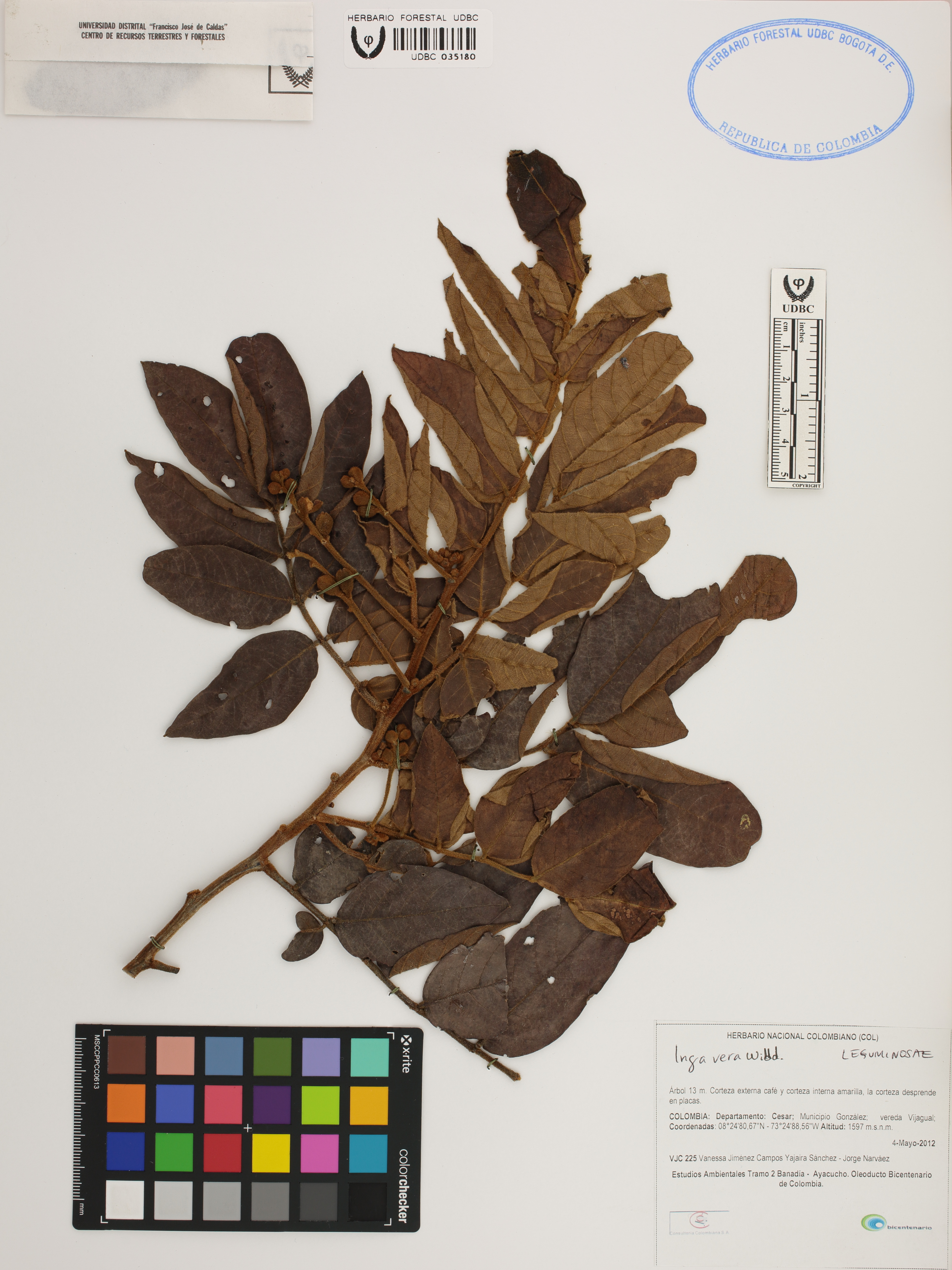 Fotografía del ejemplar Jiménez, V. 225, determinado como Inga vera