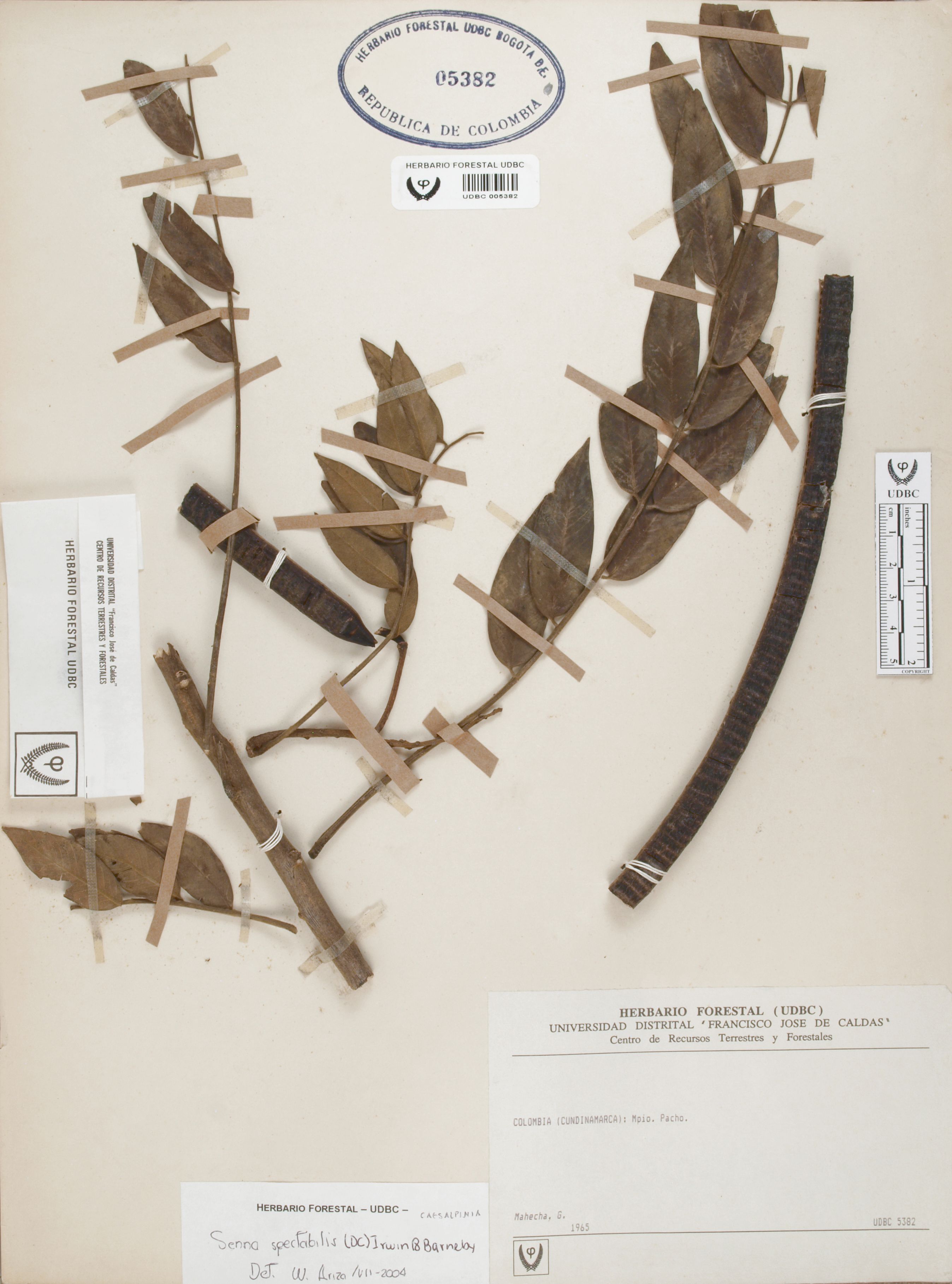 Fotografía del ejemplar Mahecha, G., determinado como Senna spectabilis en el año 2004