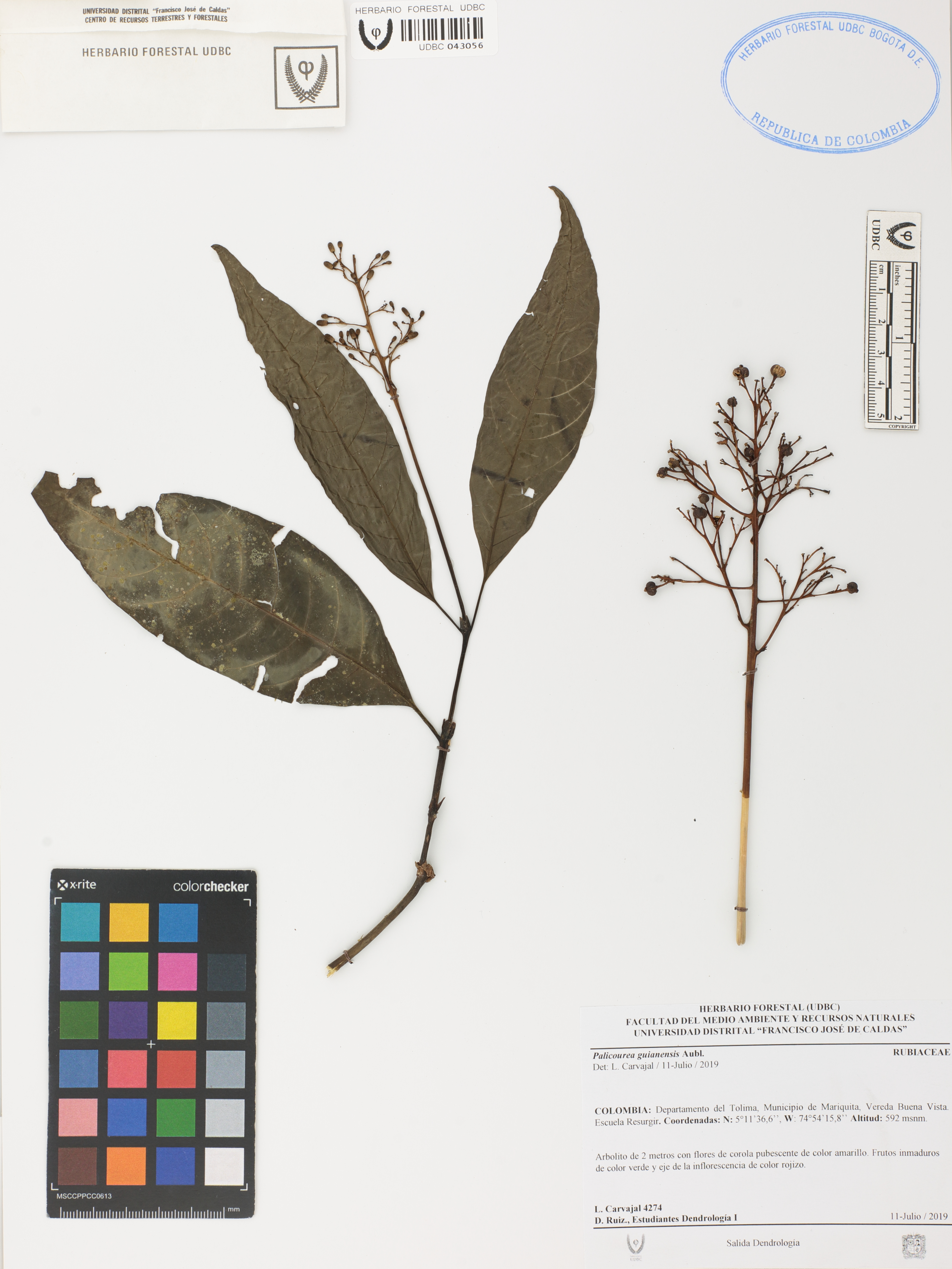 | dc.description | Fotografía del ejemplar Carvajal, L. 4274, determinado como Palicourea guianensis en el año 2019 | |