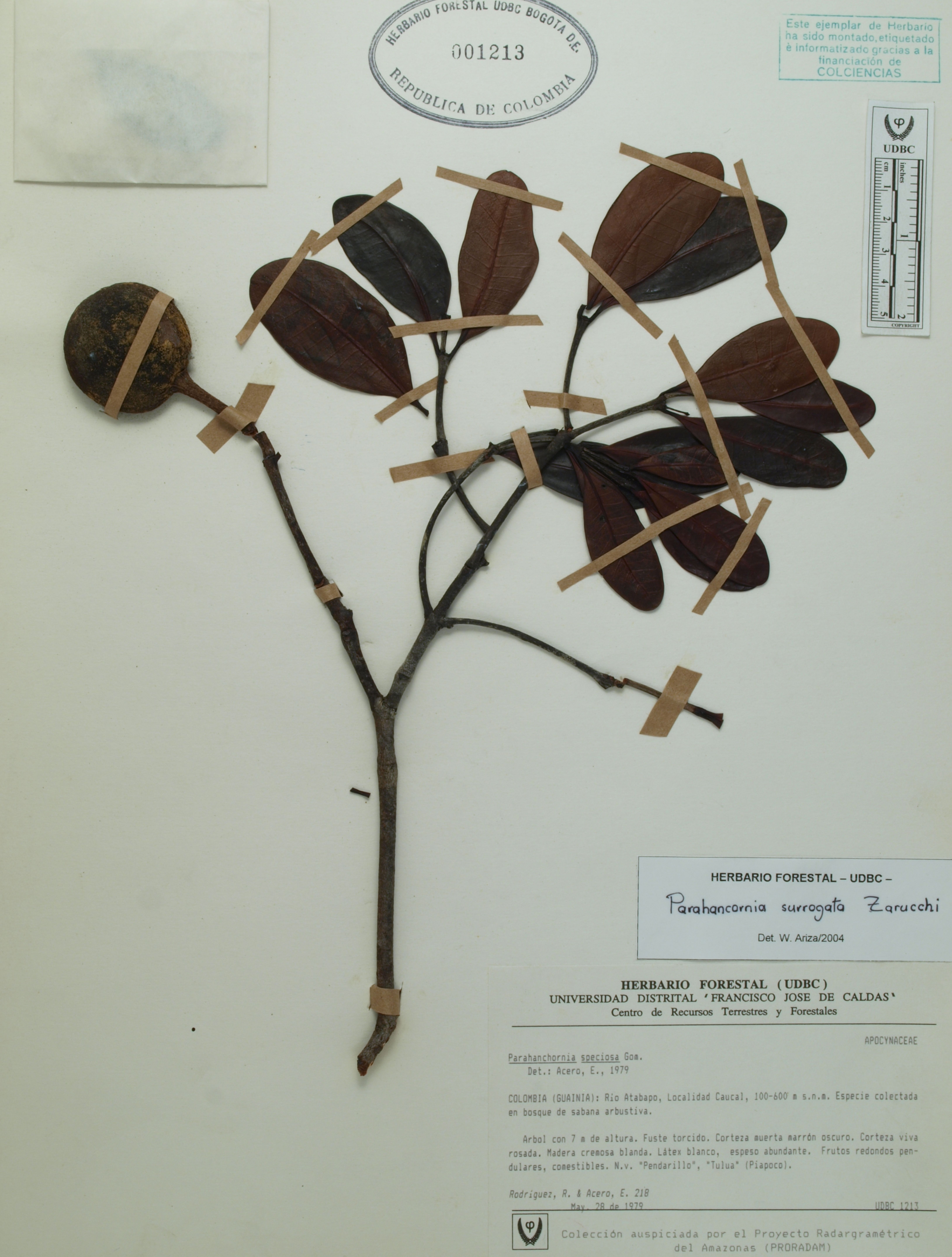 | dc.description | Fotografía del ejemplar Rodríguez, R. 218, determinado como Parahancornia surrogata en el año 2004 | |