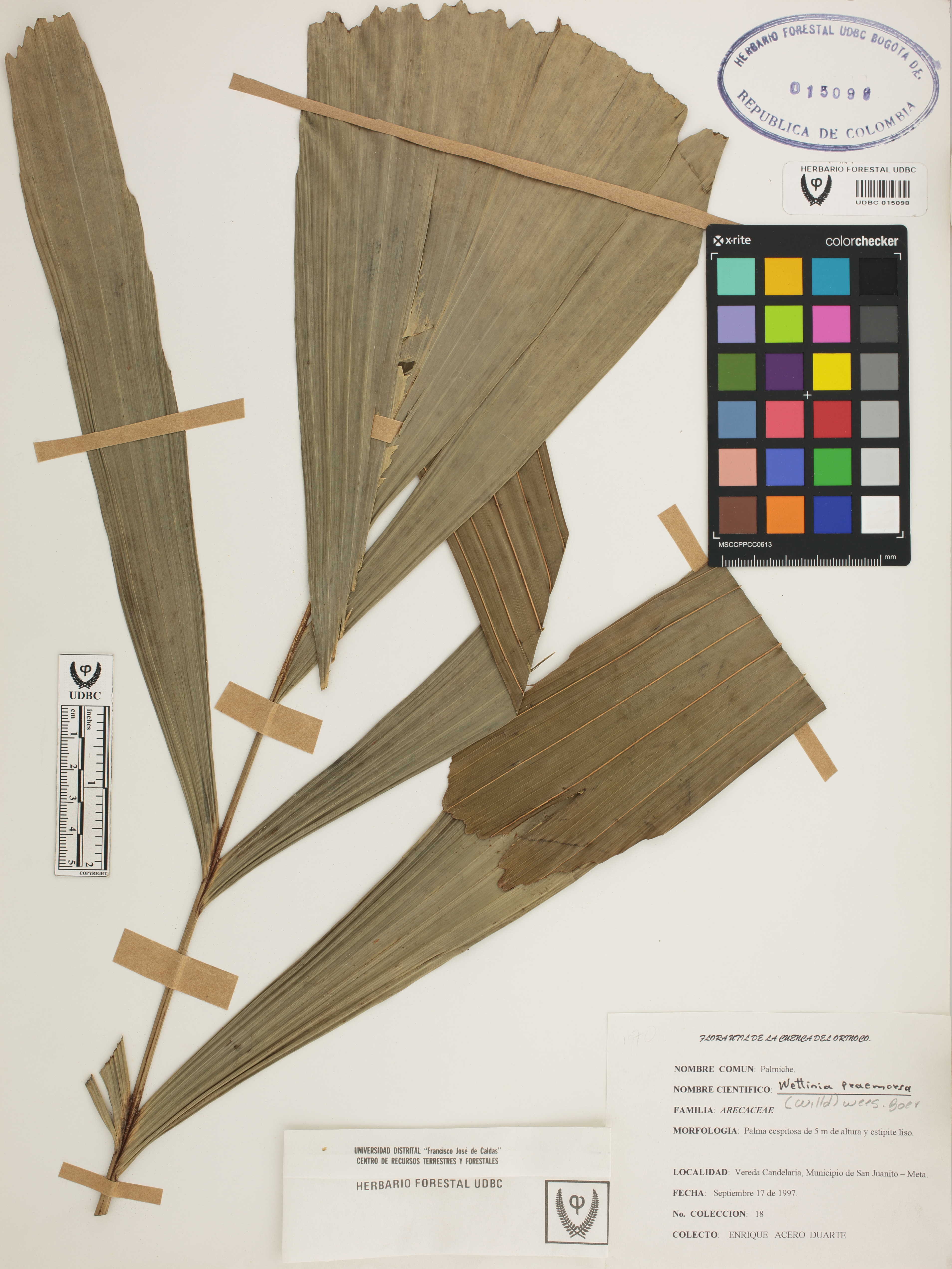 Fotografía del ejemplar Acero, E. 18, determinado como Wettinia praemorsa
