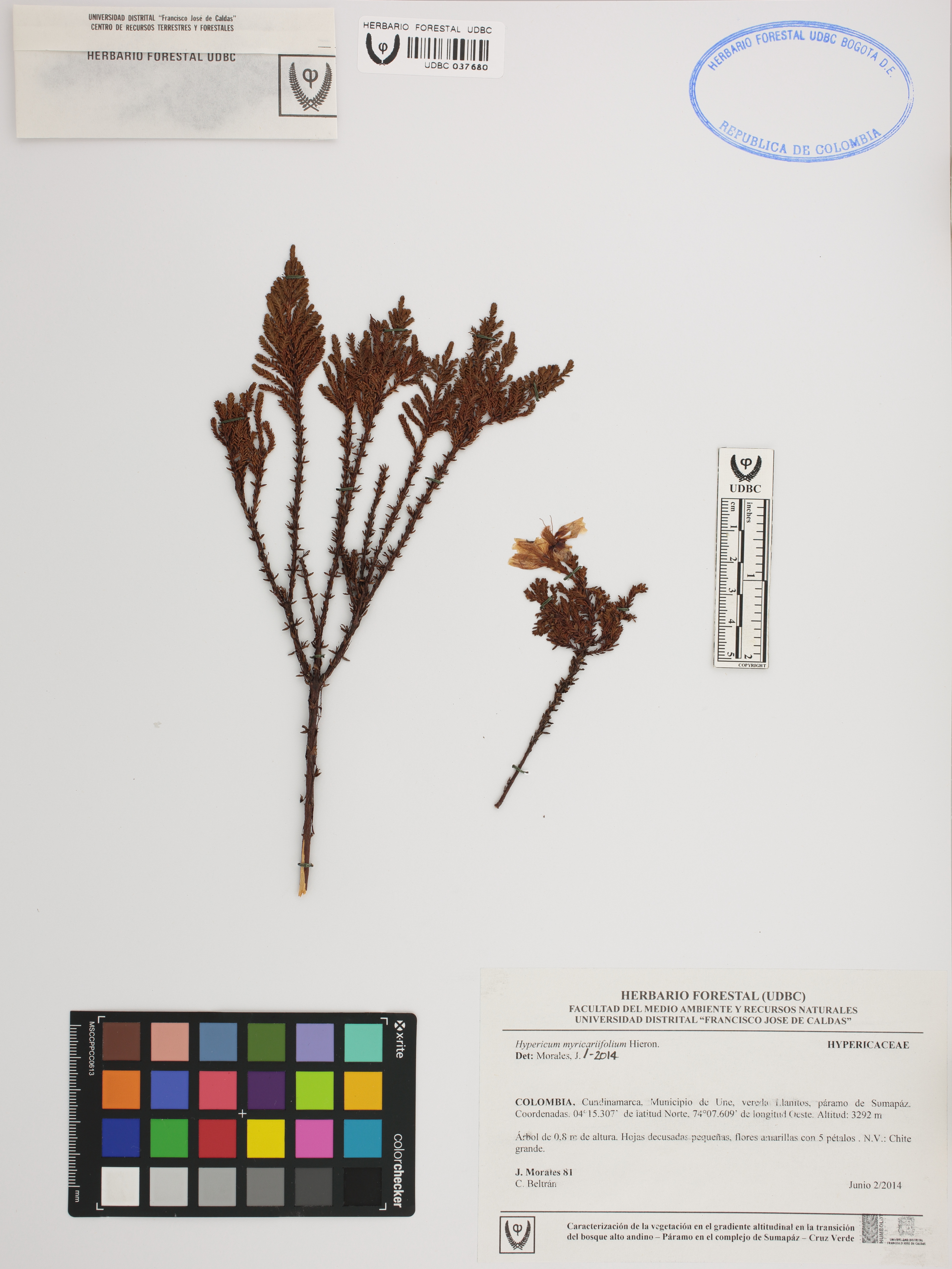 Fotografía del ejemplar Morales, J. 81, determinado como Hypericum myricariifolium en el año 2014