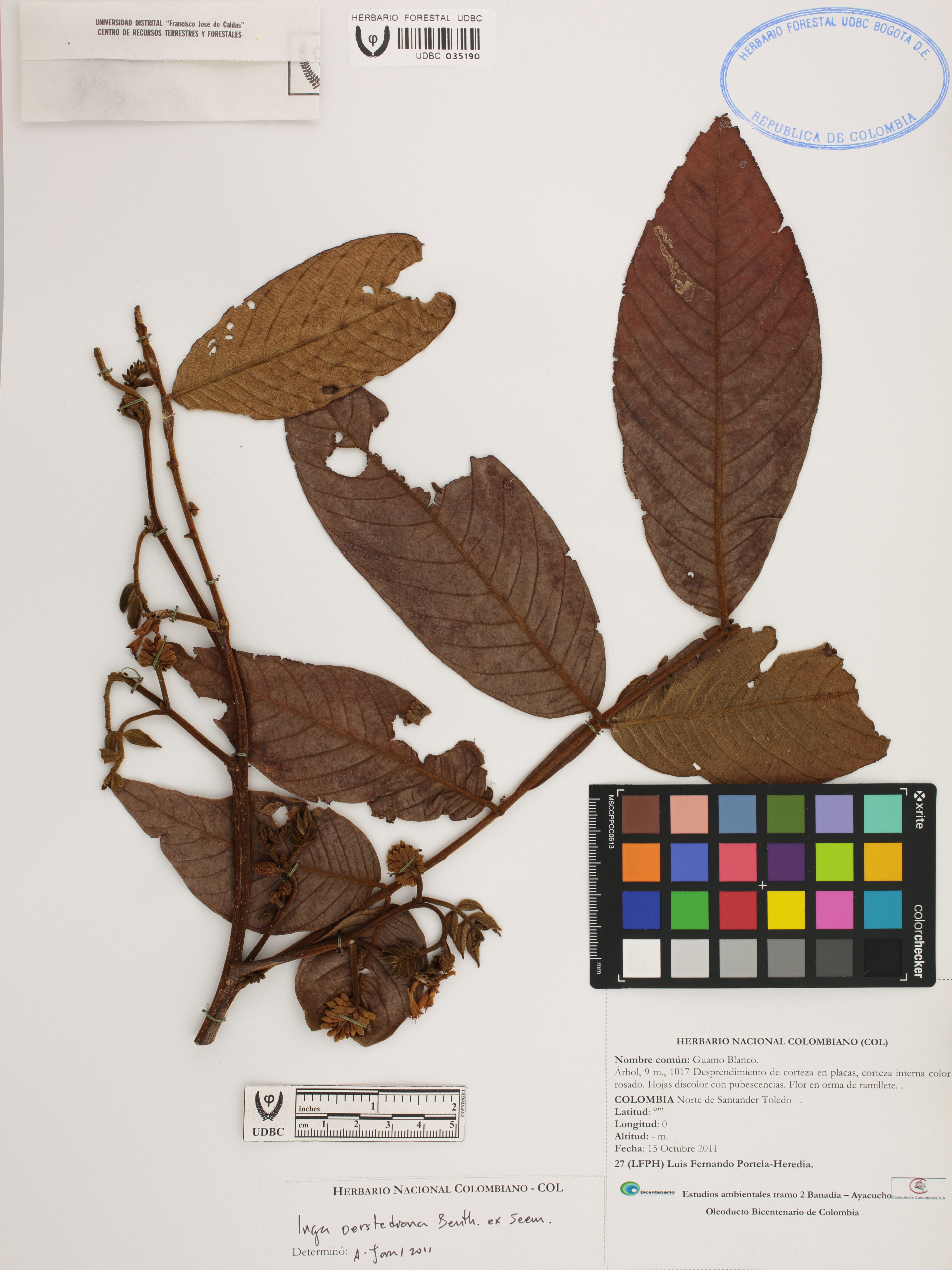 Fotografía del ejemplar Portela-Heredia, F. 27, determinado como Inga oerstediana en el año 2011