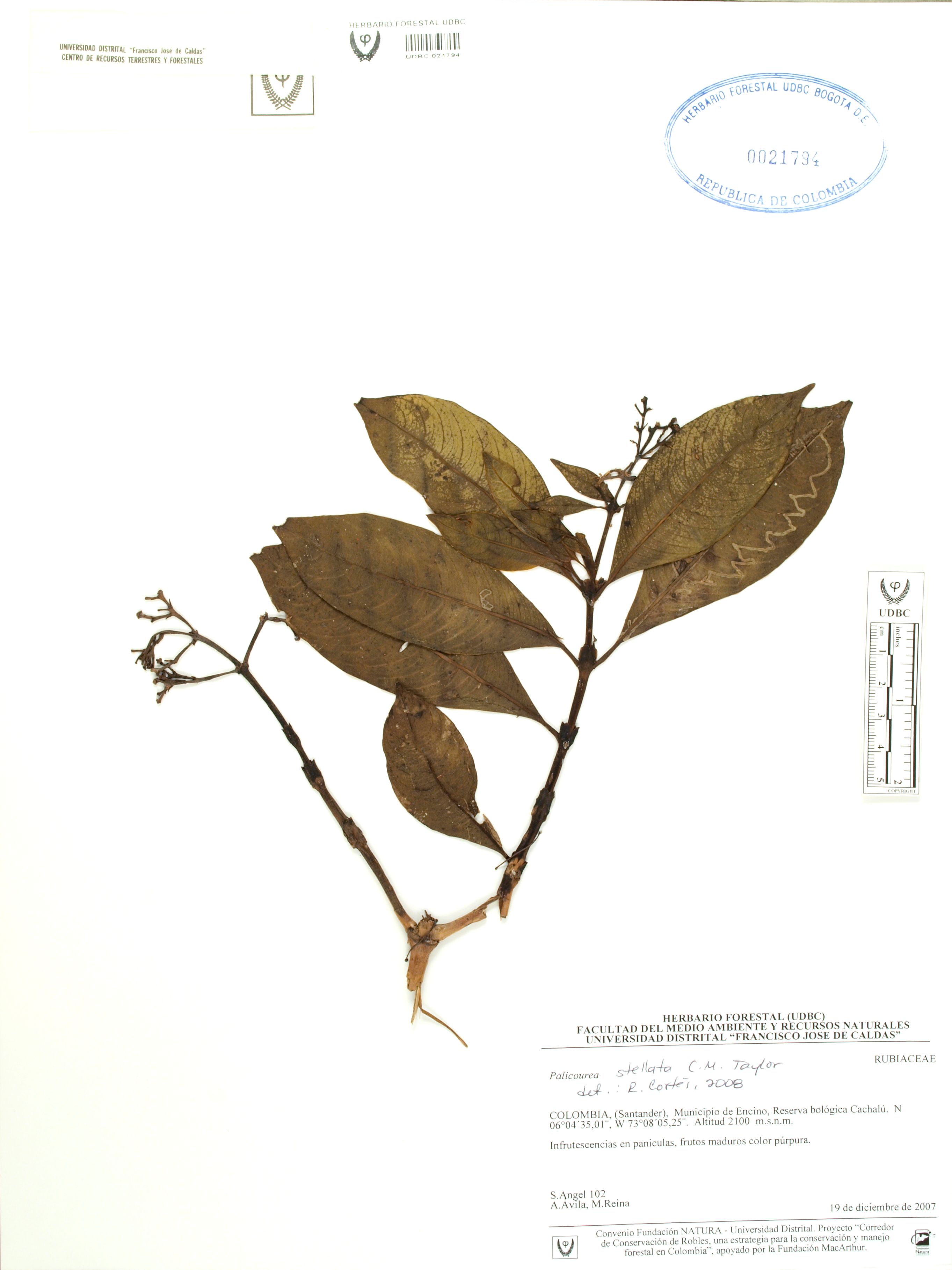 Fotografía del ejemplar Ángel, S. 102, determinado como Palicourea stellata en el año 2008