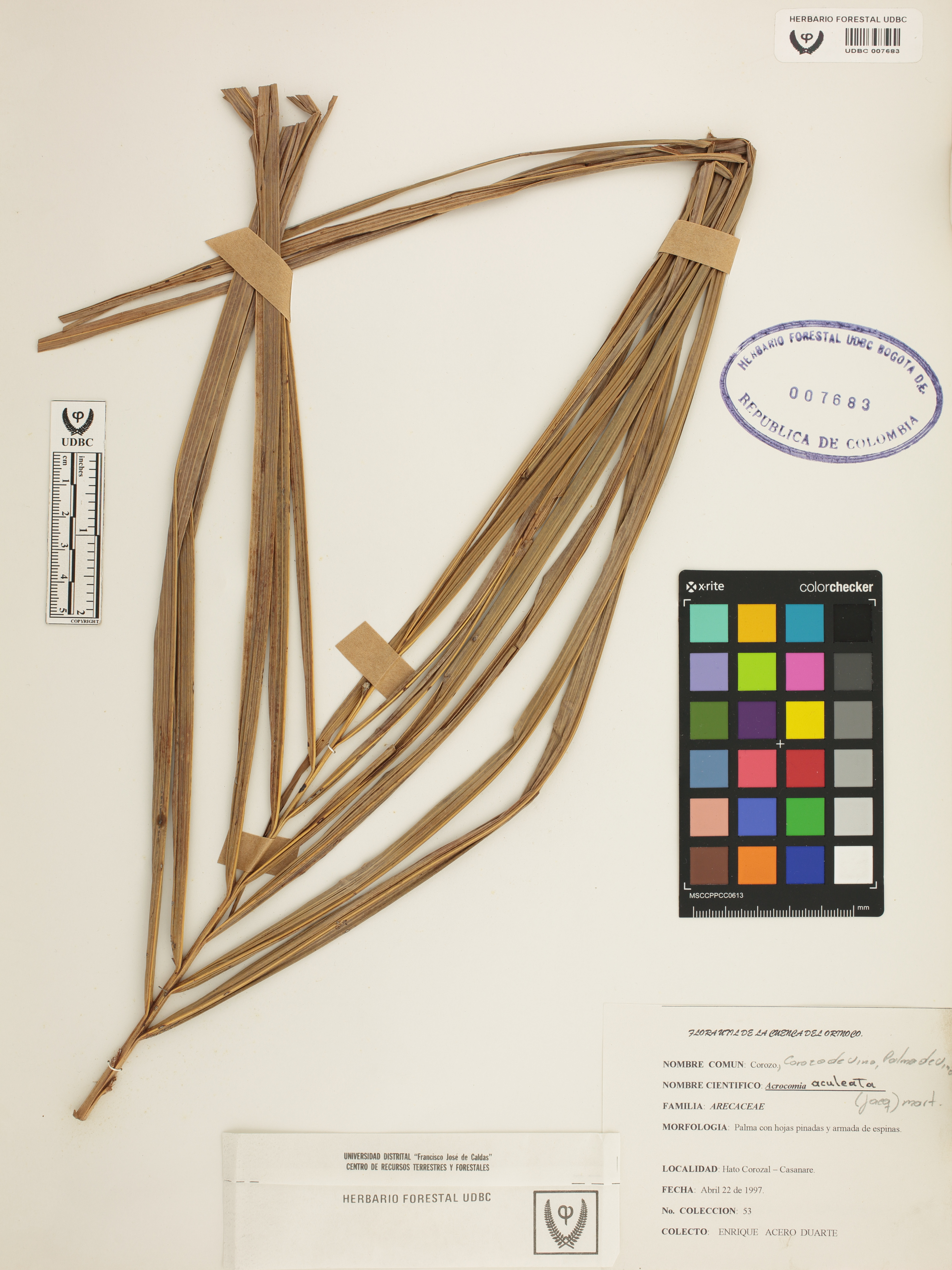 Fotografía del ejemplar Acero, E. 53, determinado como Acrocomia aculeata