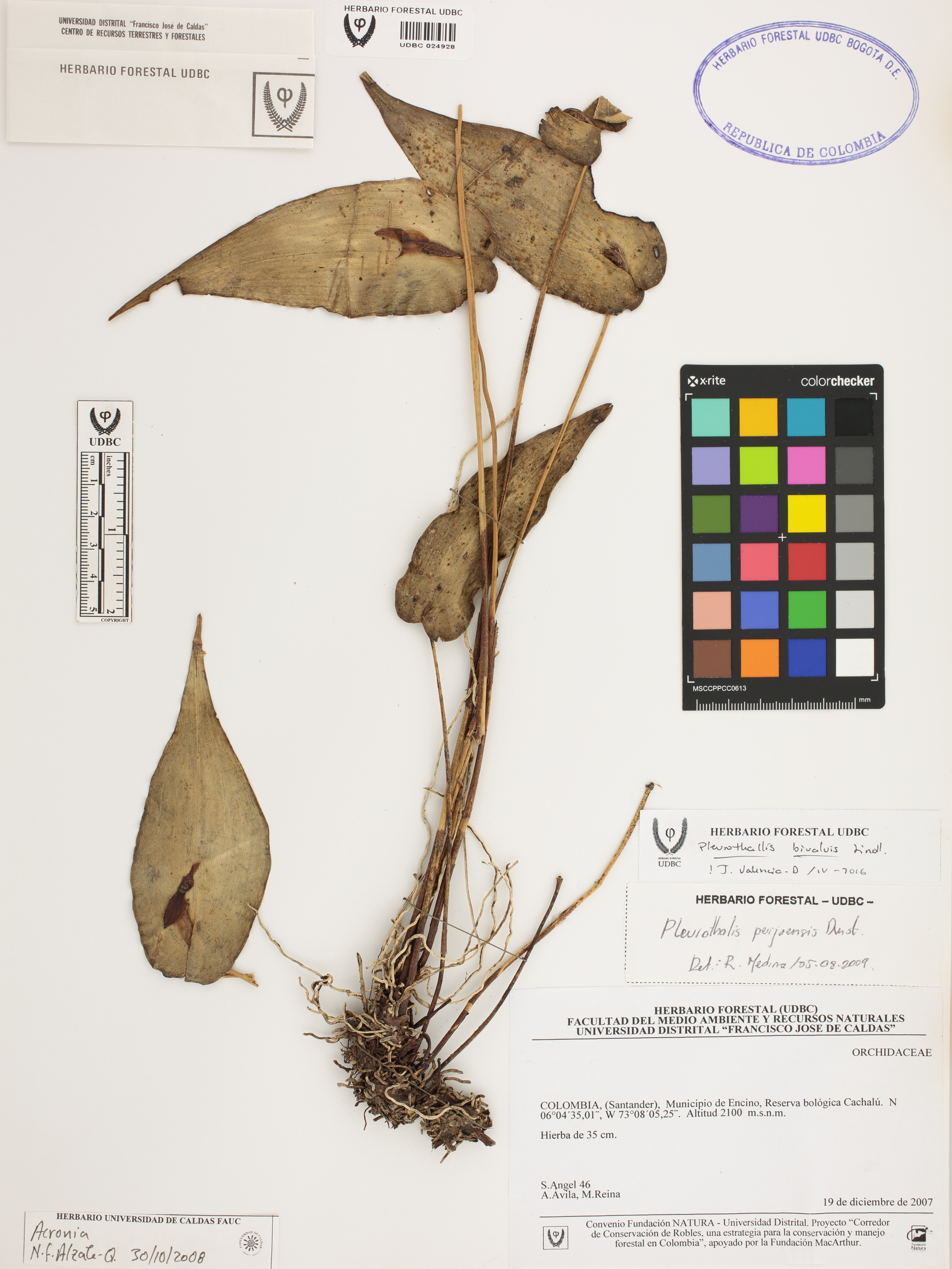 Fotografía del ejemplar Ángel, S. 46, determinado como Pleurothallis bivalvis en el año 2016