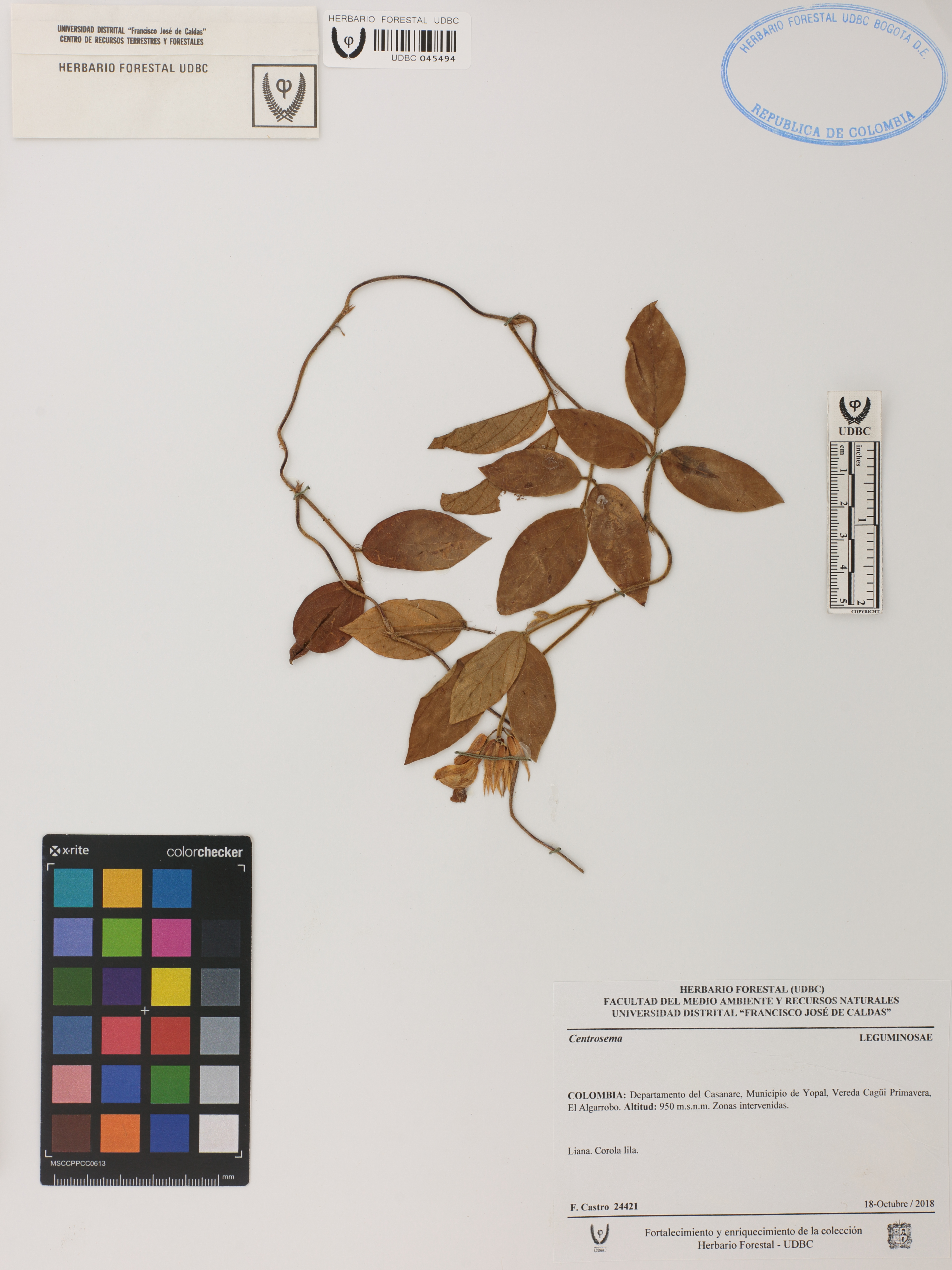 Fotografía del ejemplar Castro, F. 24421, determinado como Centrosema sp.
