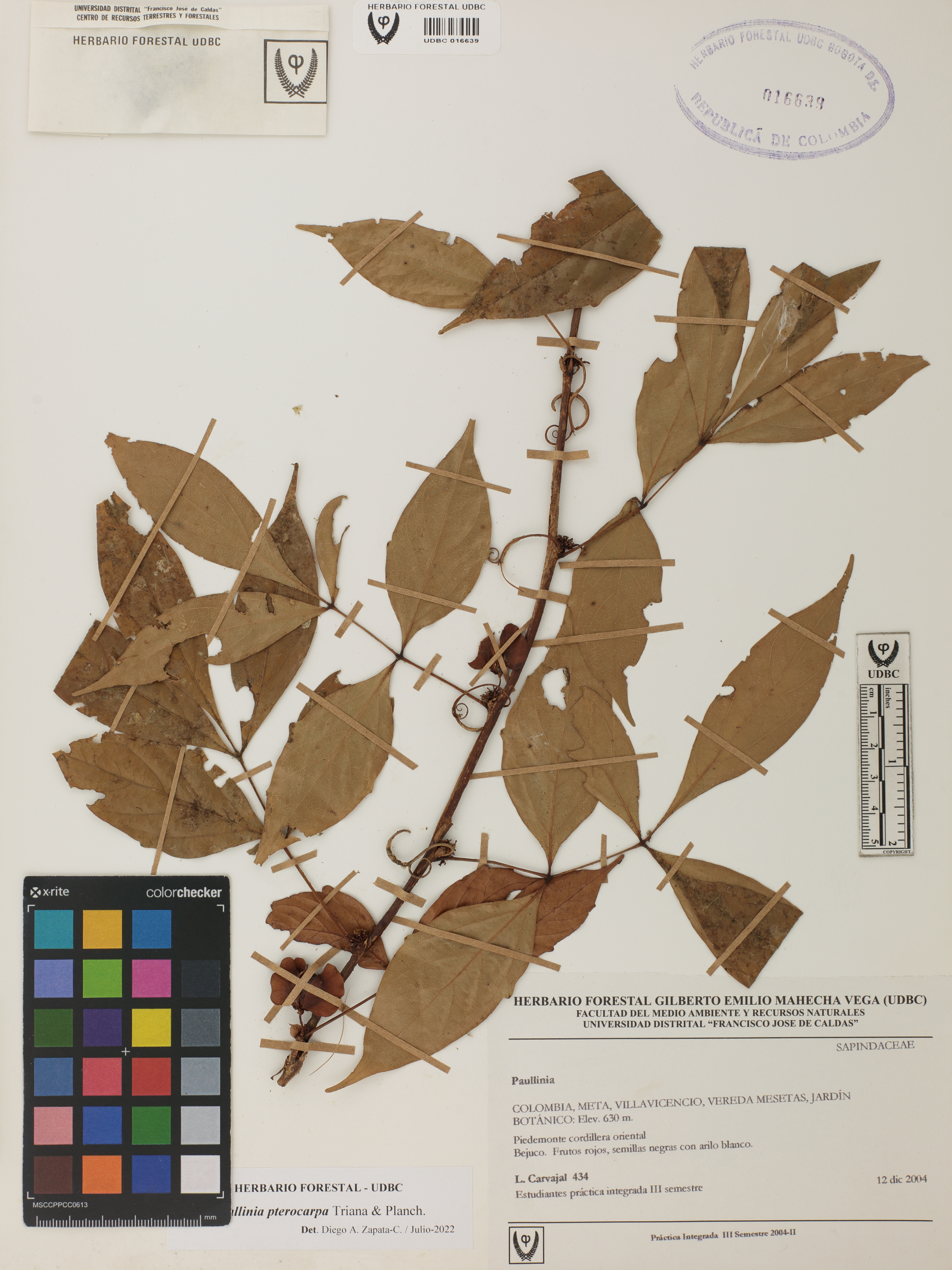 Fotografía del ejemplar Carvajal, L. 434, determinado como Paullinia pterocarpa en el año 2022
