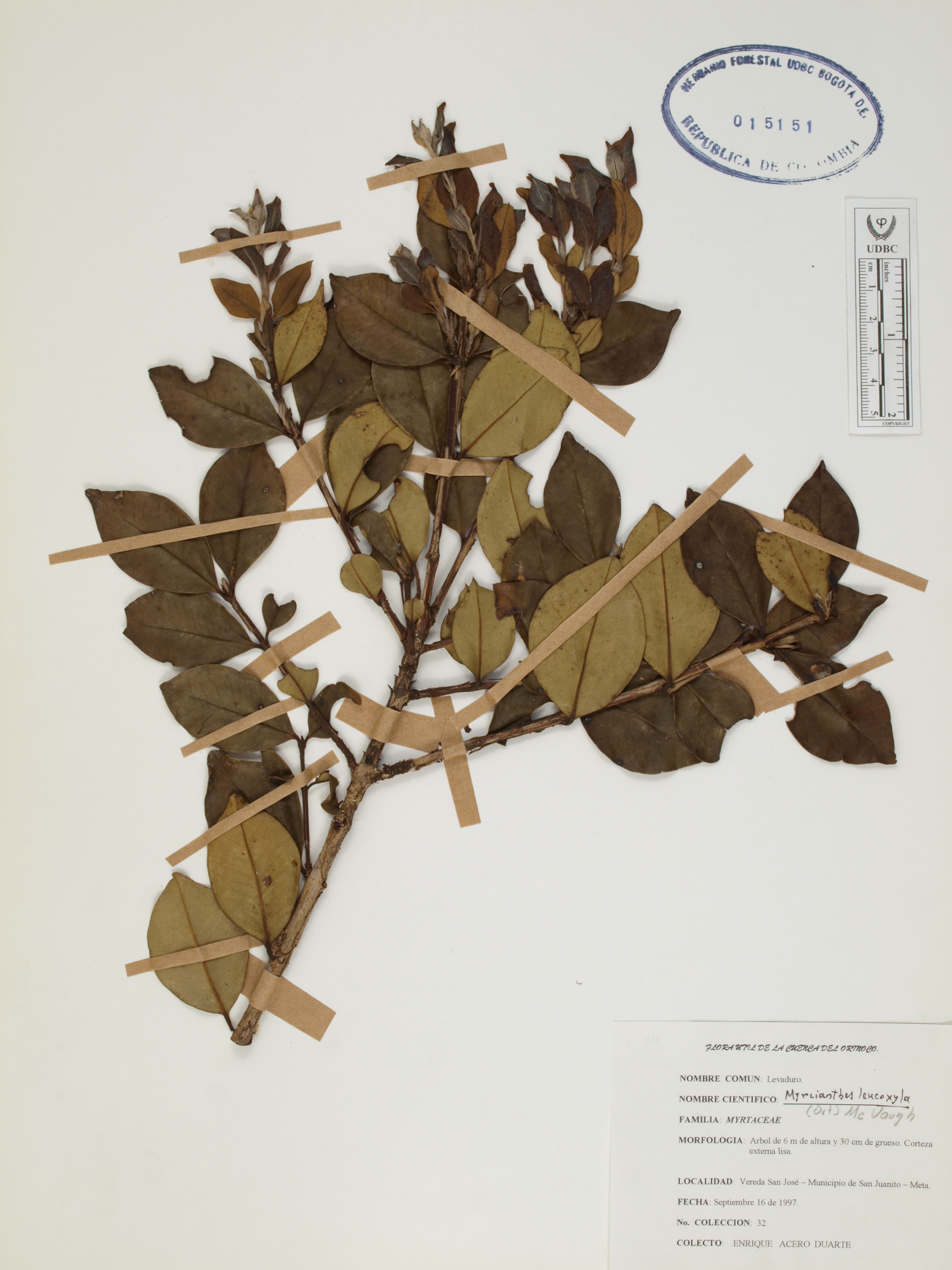 Fotografía del ejemplar Acero, E. 32, determinado como Myrcianthes leucoxyla