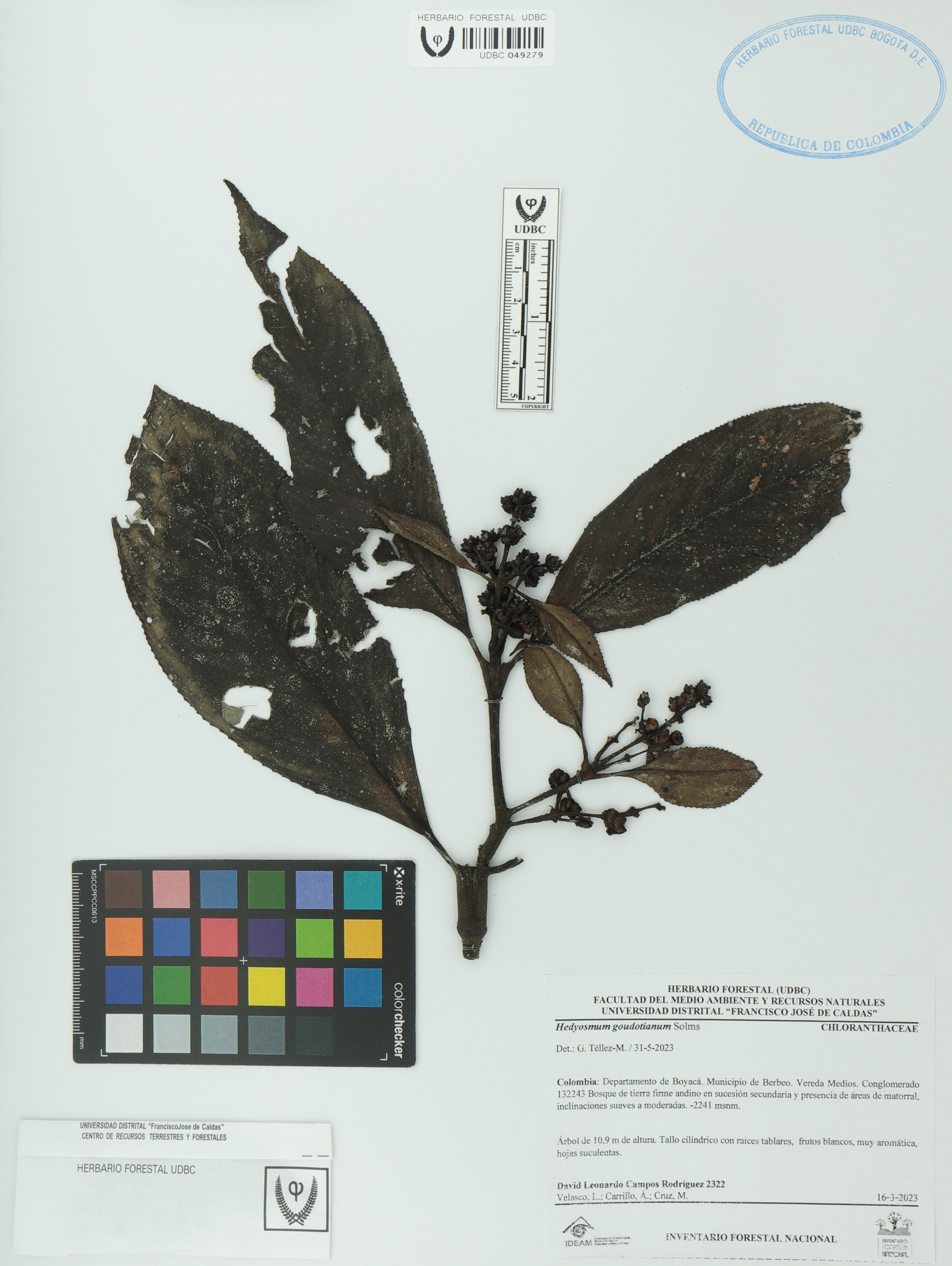 Fotografía del ejemplar Campos-Rodríguez, D. 2322, determinado como Hedyosmum goudotianum en el año 2023