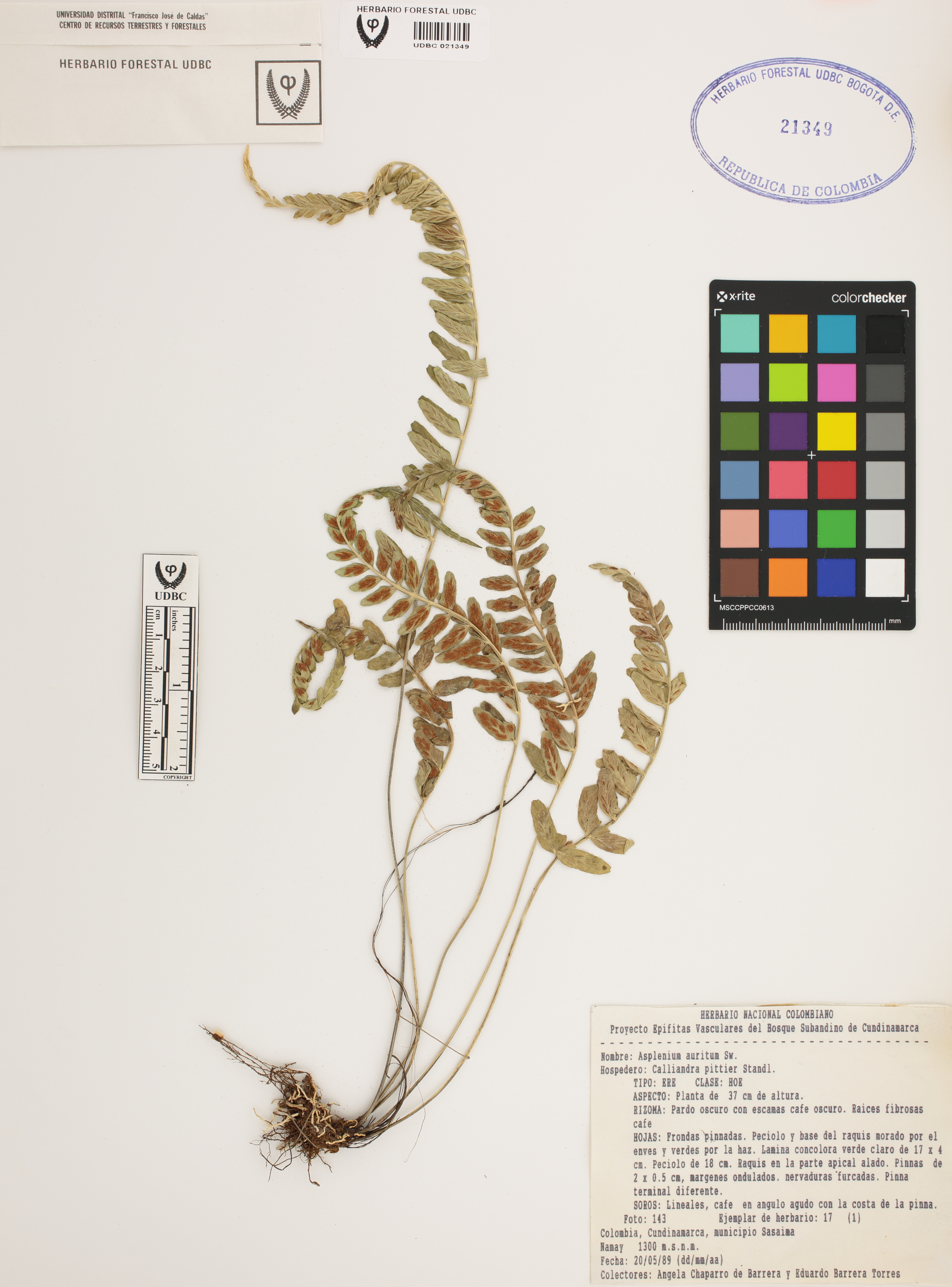 Fotografía del ejemplar Chaparro de Barrera, A. 17, determinado como Asplenium auritum